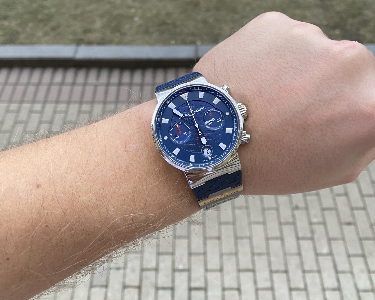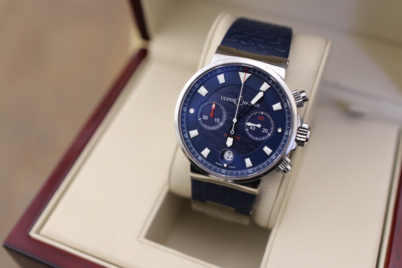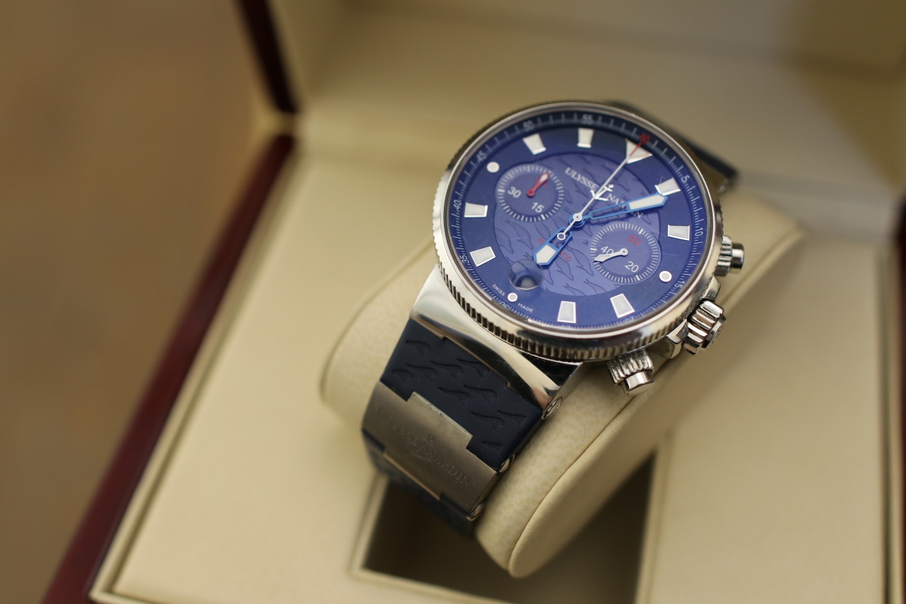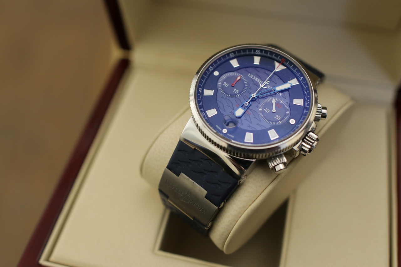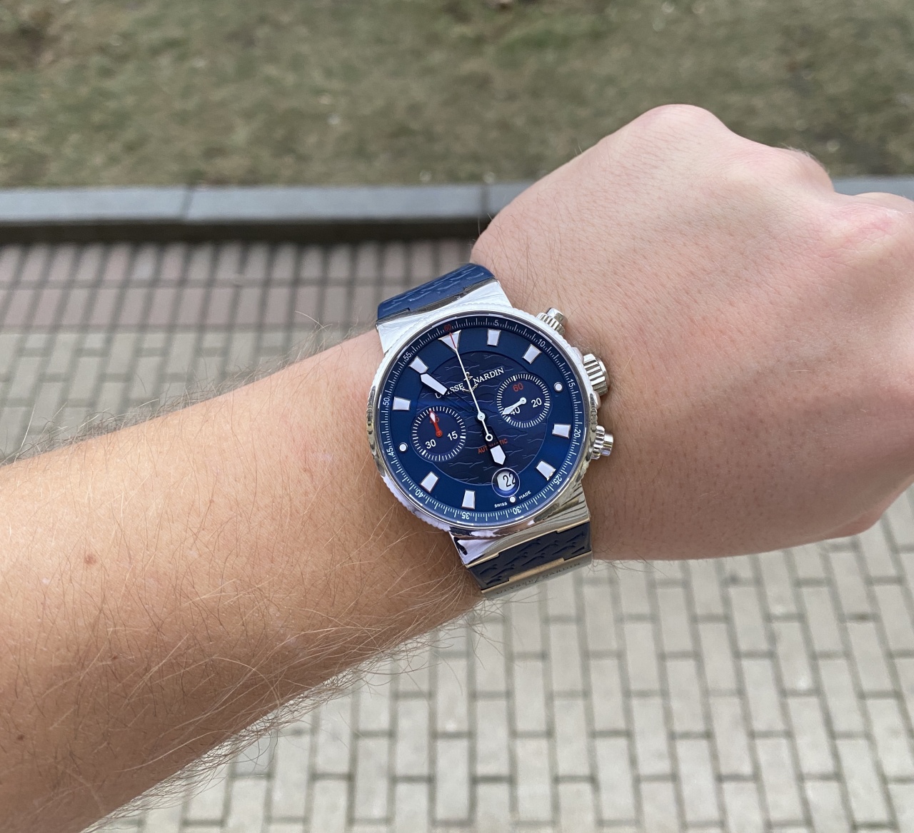 СИНИЙ! Ulysse Nardin Maxi Marine Chronograph 41 Blue Seal (Каучук , Лимитка , Сталь )