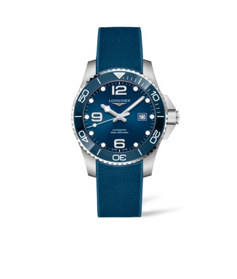 Гуляли сегодня по ГУМу и тут на глаза попался салон LONGINES. Ещё до поездки смотрел на сайте варианты, приглянулся мне HydroConquest на синем каучуке, вот такой.