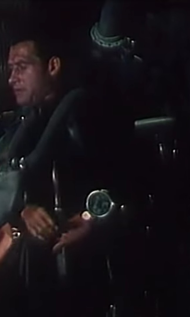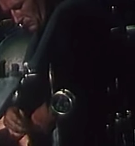 Это возможно не часы, а давление в баллонах акваланга. Расходомер... Часы у него рядом и в золоте. Он же американский шпион, у него все должно быть не по нашему и очень круто.