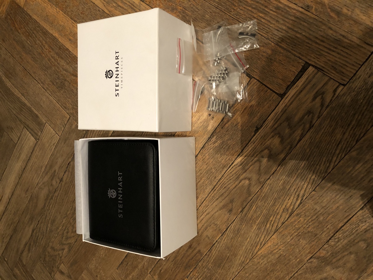 Два браслета. Один который с завода - вообще не носил. Сразу снял и поставил второй, который так же заказывал в официальном магазине в Германии. Отдельно он кстати 7 к. стоит. Все звенья соответственно имеются.
