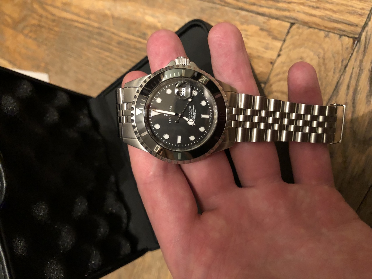 Прекрасные часы с керамическим однонаправленным безелем, циклопом и заглублением 300м