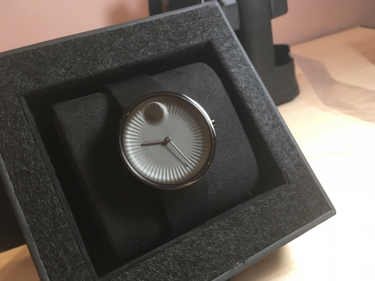 На мой взгляд, самый удачная версия с черным циферблатом и черными стрелками на каучуке.