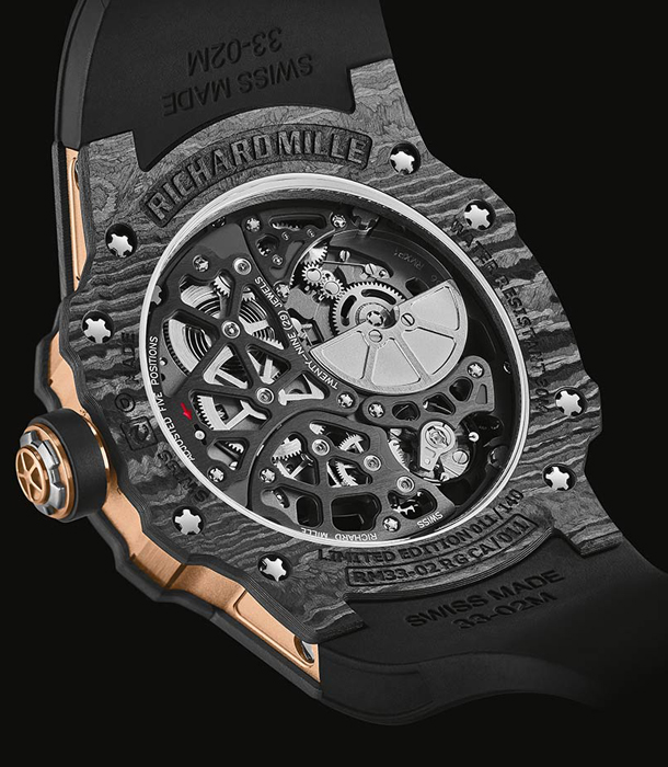 Мануфактура Richard Mille представила модель RM 33-02 - первые круглые автоматические часы с корпусом, изготовленным из карбона TPT. Эта модель эволюционировала из RM 033, впервые представленной в 2011 году, и модели RM 33-01 Automatic, которая появилась в 2015 году.