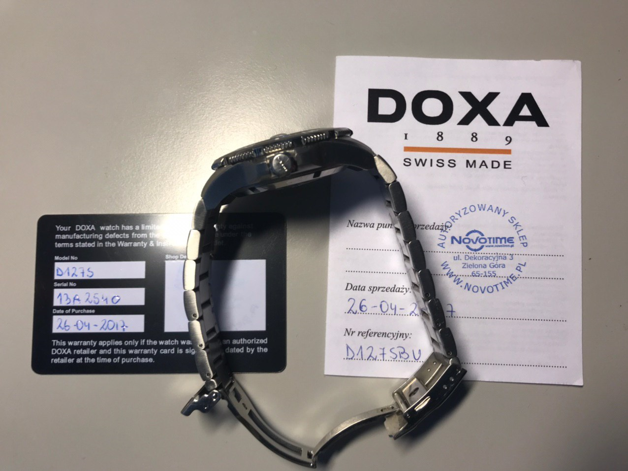 Продаю чсы-дайверы швейцарского бренда DOXA. Арт. по каталогу D127S. Стальной корпус и браслет, двойная застежка. Механика с автоподзаводом, калибр ETA 2824-2. 25 камней. Резерв хода 40 часов. Водонепроницаемость до 300 м. Сапфировое стекло с антибликовым покрытием. Однонаправленный керамический безель на 60 кликов. Индексы и стрелки с люминисцентным покрытием. Дата. Завинчивающаяся заводная головка. Призведены в Швейцарии. Куплены у официального ретейлера в Европе, в 2017 году. Документы и коробка. Носились мало. Состояние отличное. Любителям DOXA и вообще дайверов. Отличные часы с генами DOXA Sub.