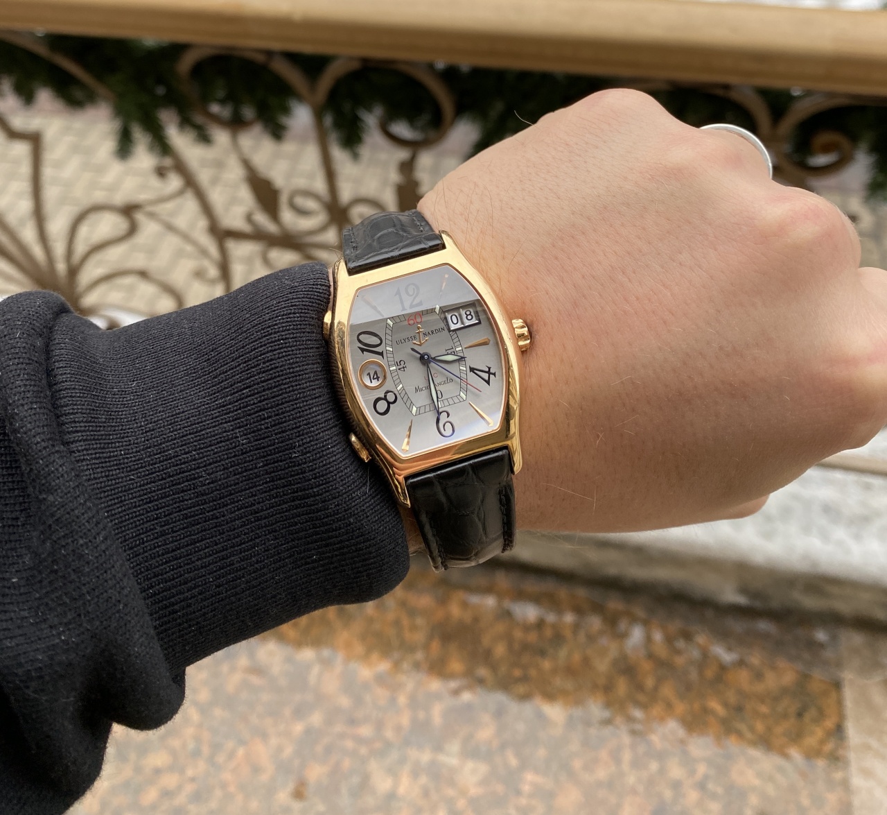 Отличный костюмный Ulysse Nardin Michelangelo , носились крайне редко , следы носки минимальные! Ремень оригинальный , часы не полировались! год назад делался репассаж!