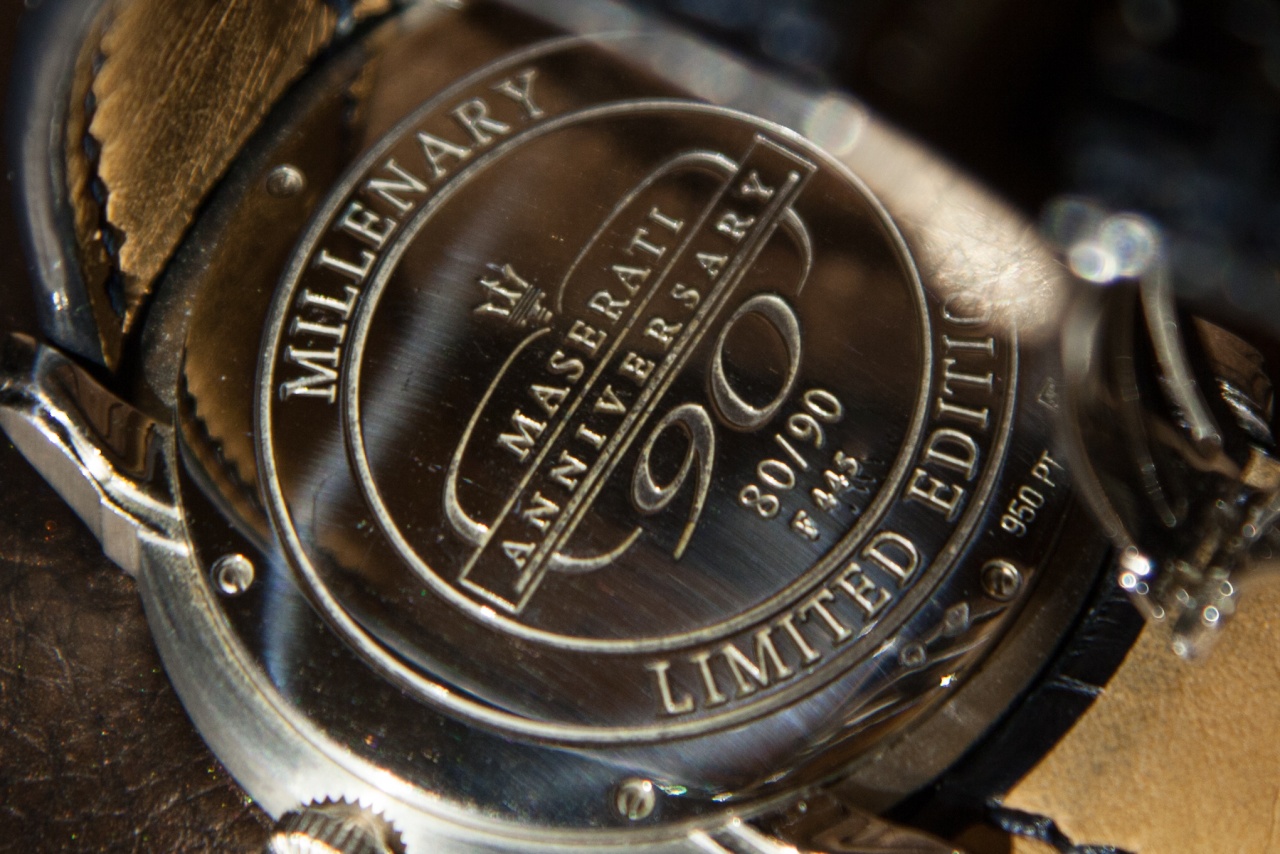 На задней крышке - памятный логотип 90-летней годовщины Maserati.