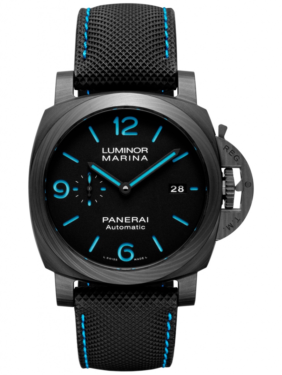 Компания Panerai анонсировала выпуск модели Luminor Marina Carbotech™ – 44 mm (PAM01661). Эта новинка 2020 года знаменует собой возрождение коллекции Luminor Marina. Впервые в часах соединены корпус из высокотехнологичного карбонового композита (разработка Laboratorio di Idee Panerai) и знаковый для бренда корпус типа «сэндвич» с использованием люминофора синего свечения.