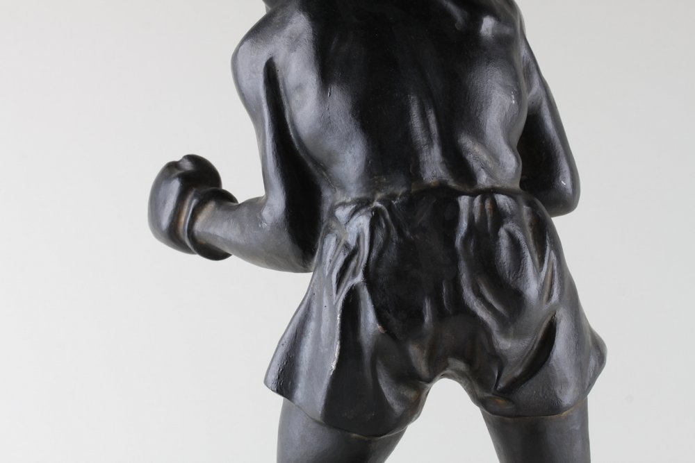 Скульптура представляет собой фигуру мужчины спортсмена – боксера. Динамичная постановка в пространстве, боксер готов к бою с противником. Высокое качество литья и проработки деталей. Скульптура опубликована в книге "Чугунное художественное литье 1920-2009" (автор – Зак А.С., стр. 72, 2009 год).