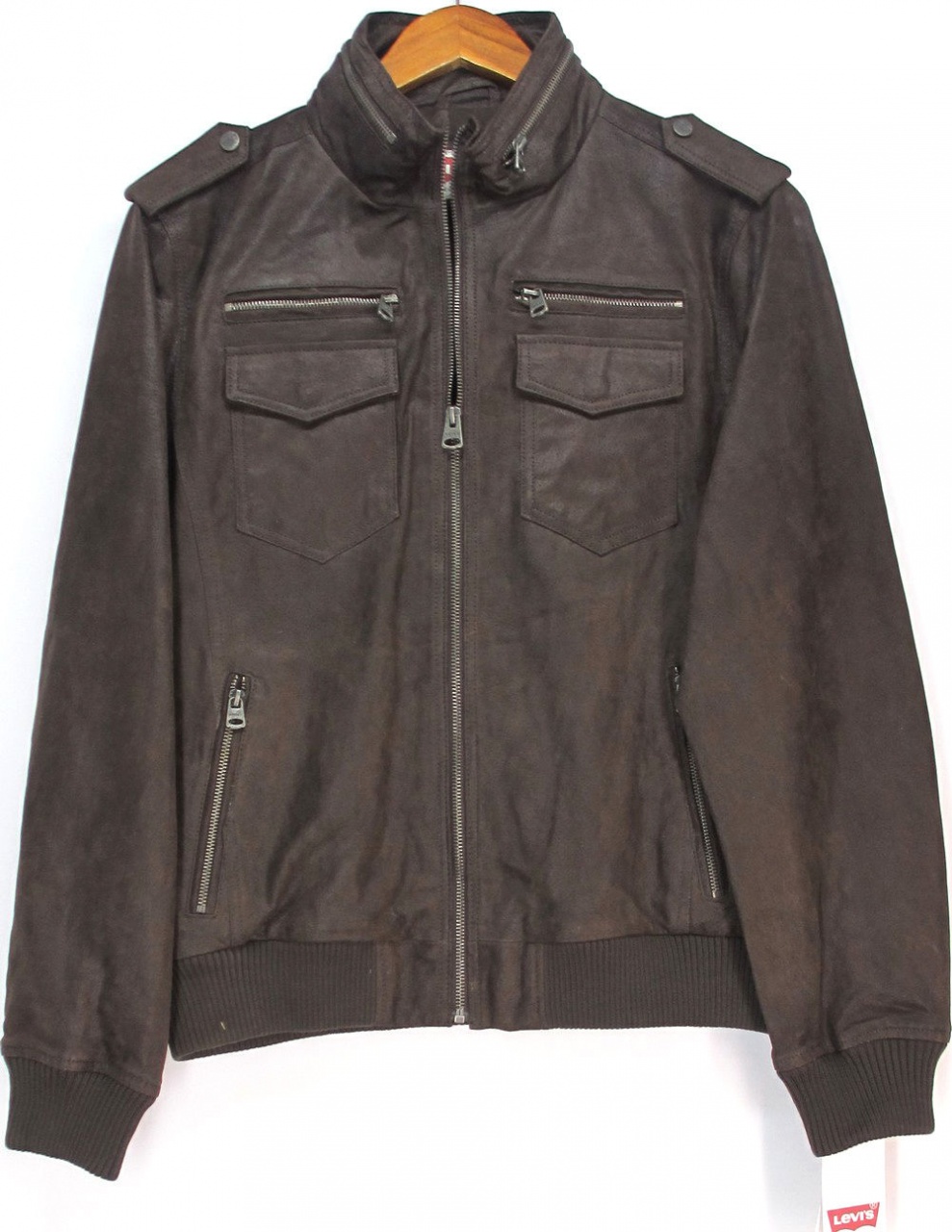 Куртка кожаная Levis Bomber, коричневая (50-52)