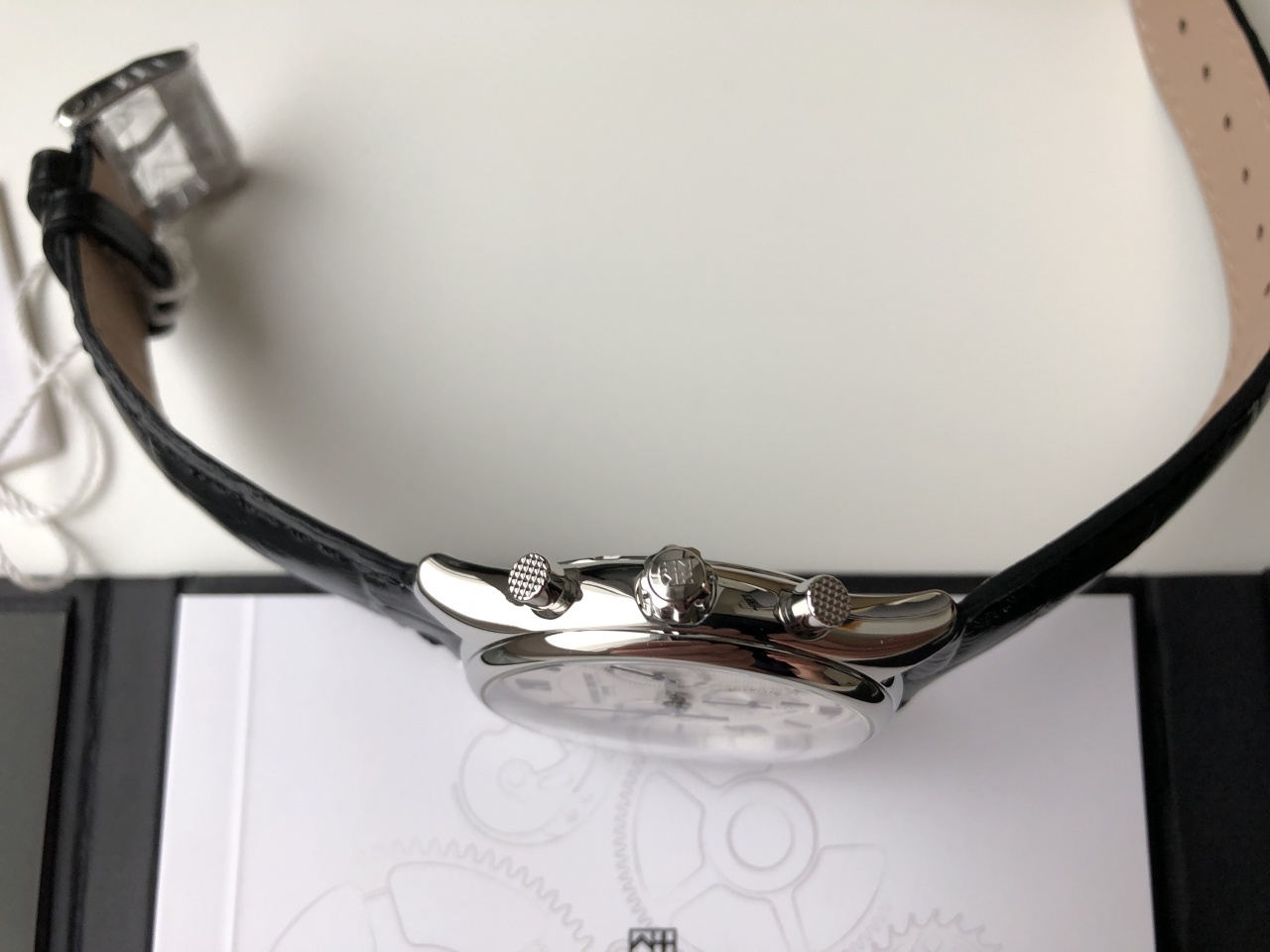 Качество отделки на высоком уровне, все метки на циферблате накладные, антибликовое покрытие на сапфировом стекле.