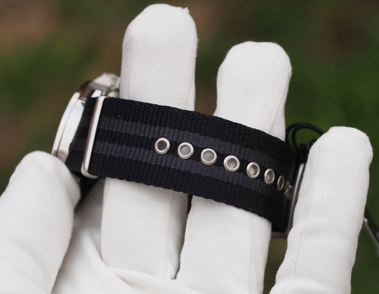 Нейлоновый двухцветный нато ремень, металлические люверсы, 22мм