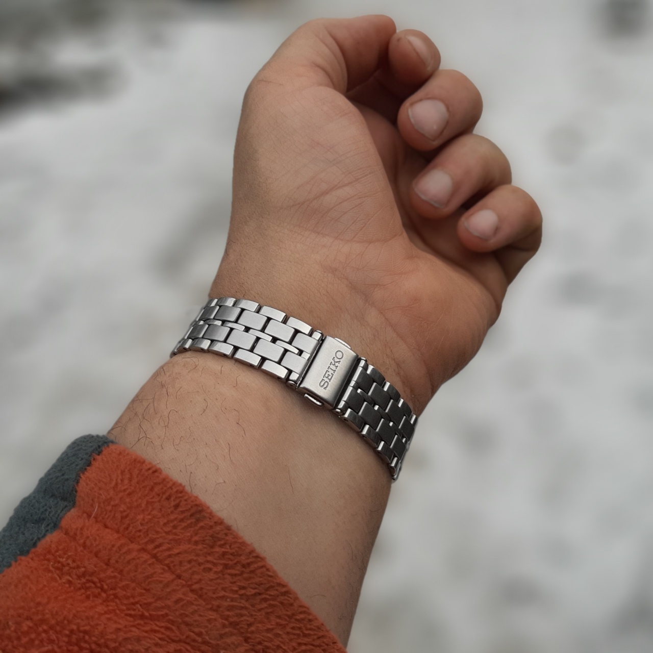 Покупал часы уже не новыми, поэтому дополнительных снятых звеньев нет. (Только поэтому и продаю, на мою полную руку слишком в обрез).