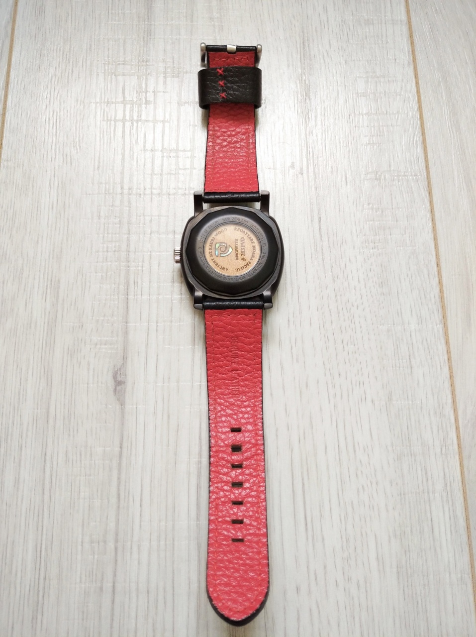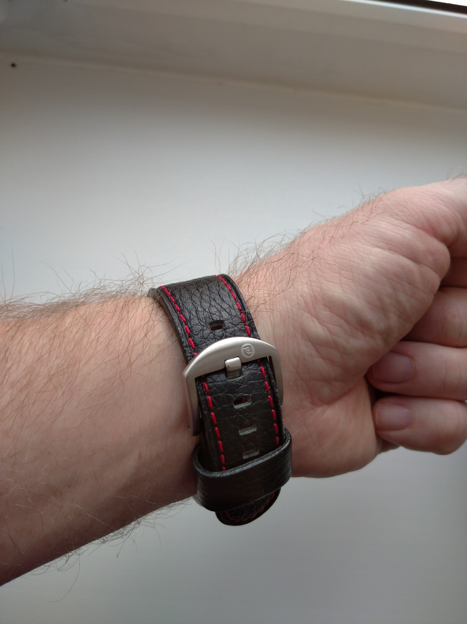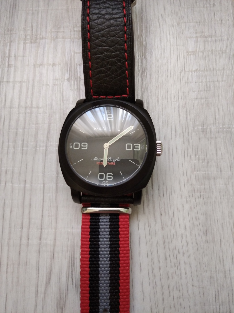 Два ремешка - родной черный к красной подкладкой и прострочкой и Нато ремень, который очень идет часам. Оба ремня в хорошем состоянии.