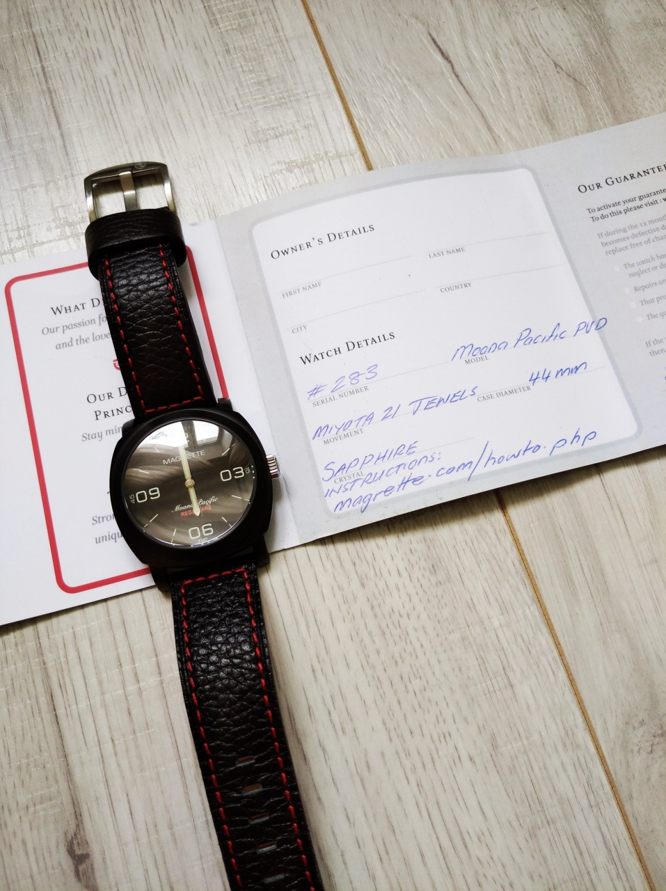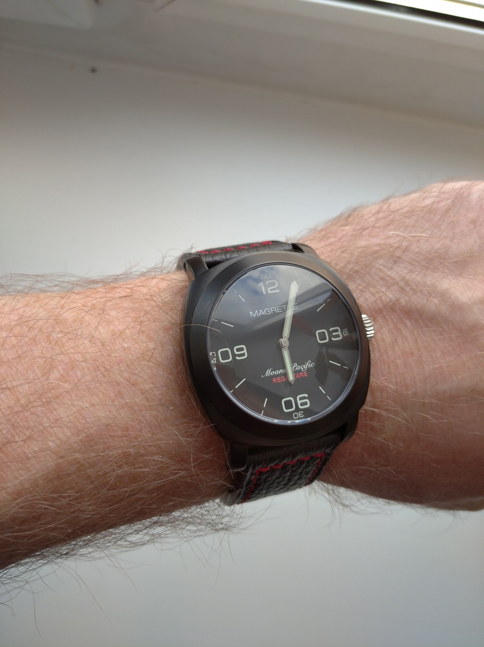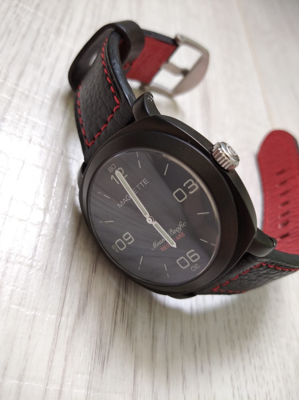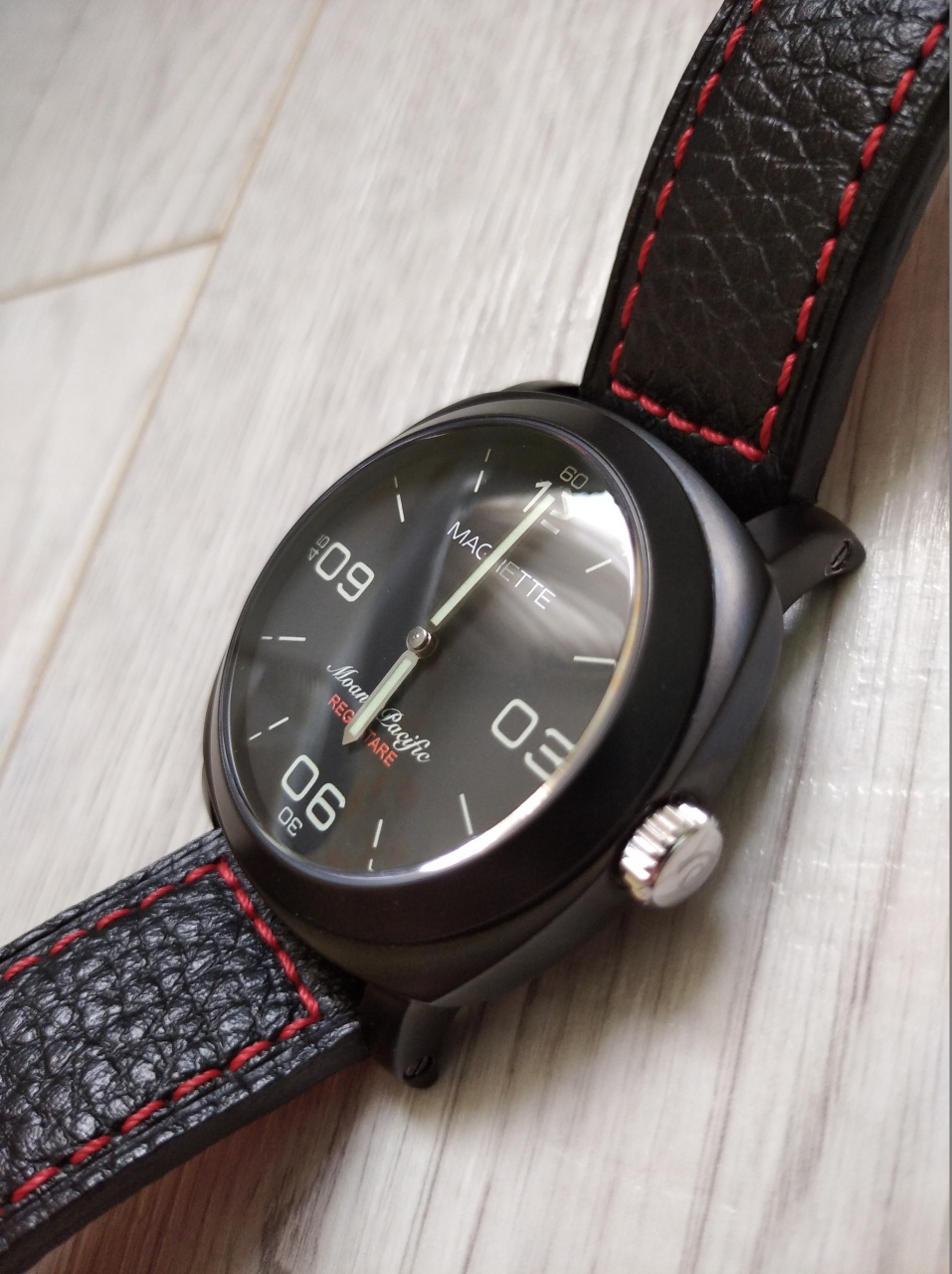 Два ремешка - родной черный к красной подкладкой и прострочкой и Нато ремень, который очень идет часам. Оба ремня в хорошем состоянии.