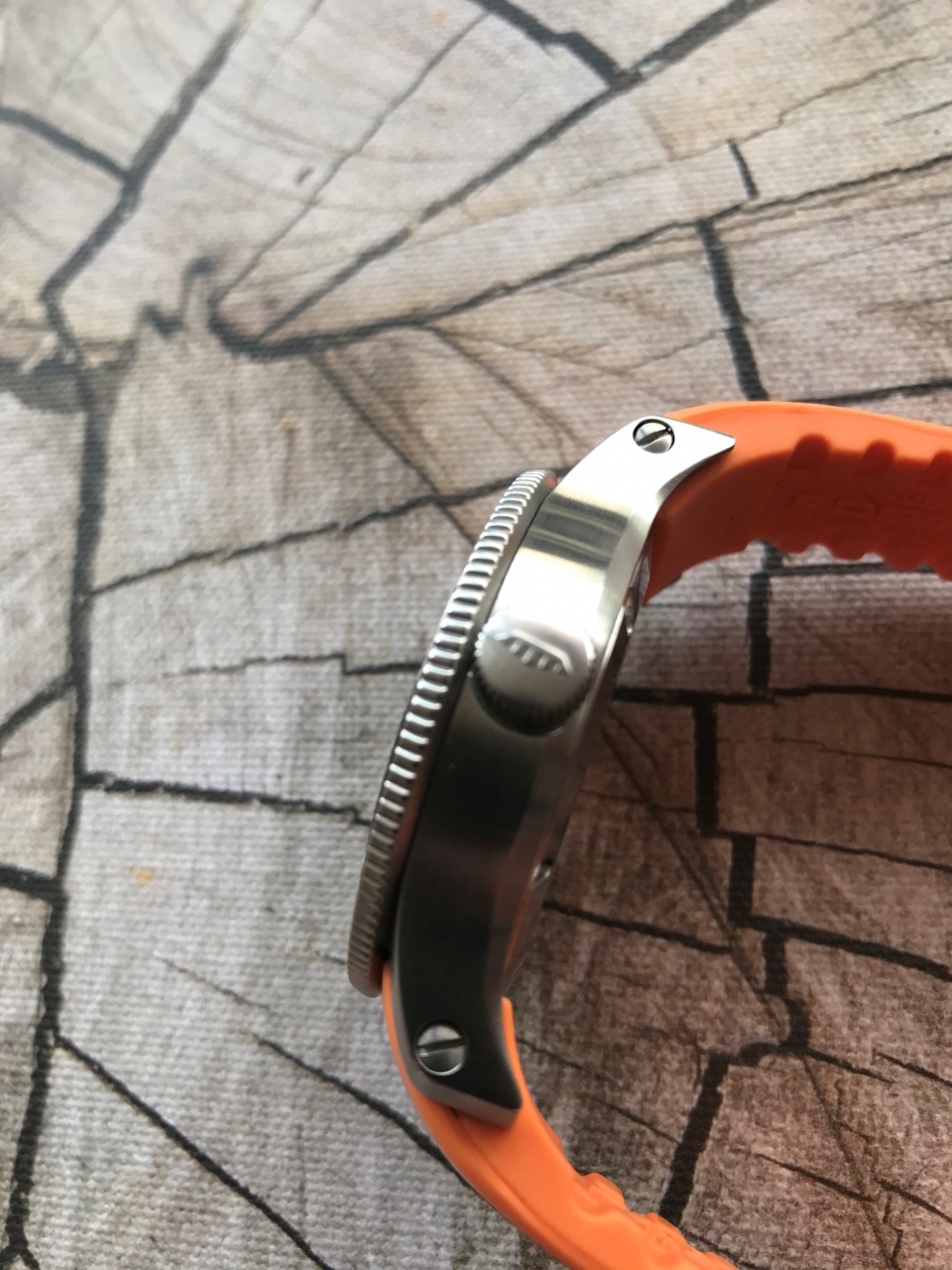 Функции и усложнения: GMT, Дата, индикация часов, минут и секунд. Треугольники в позиции 3 часа указывают в какую сторону вращать заводную головку для установки числа и второго часового пояса. Безель вращается в одном направлении