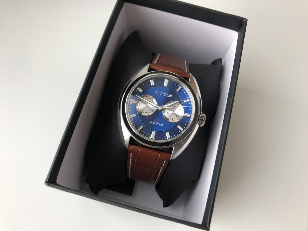 Отличная повседневная модель от Ситизен в форм-факторе «подушка» с красивейшим синим циферблатом в стиле «панда».
