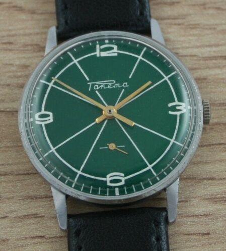 Кроме самого этого угловатого изображения марки, обратите внимание на надпись "Сделано в СССР". Стиль не характерен для кириллических циферблатов ПЧЗ.