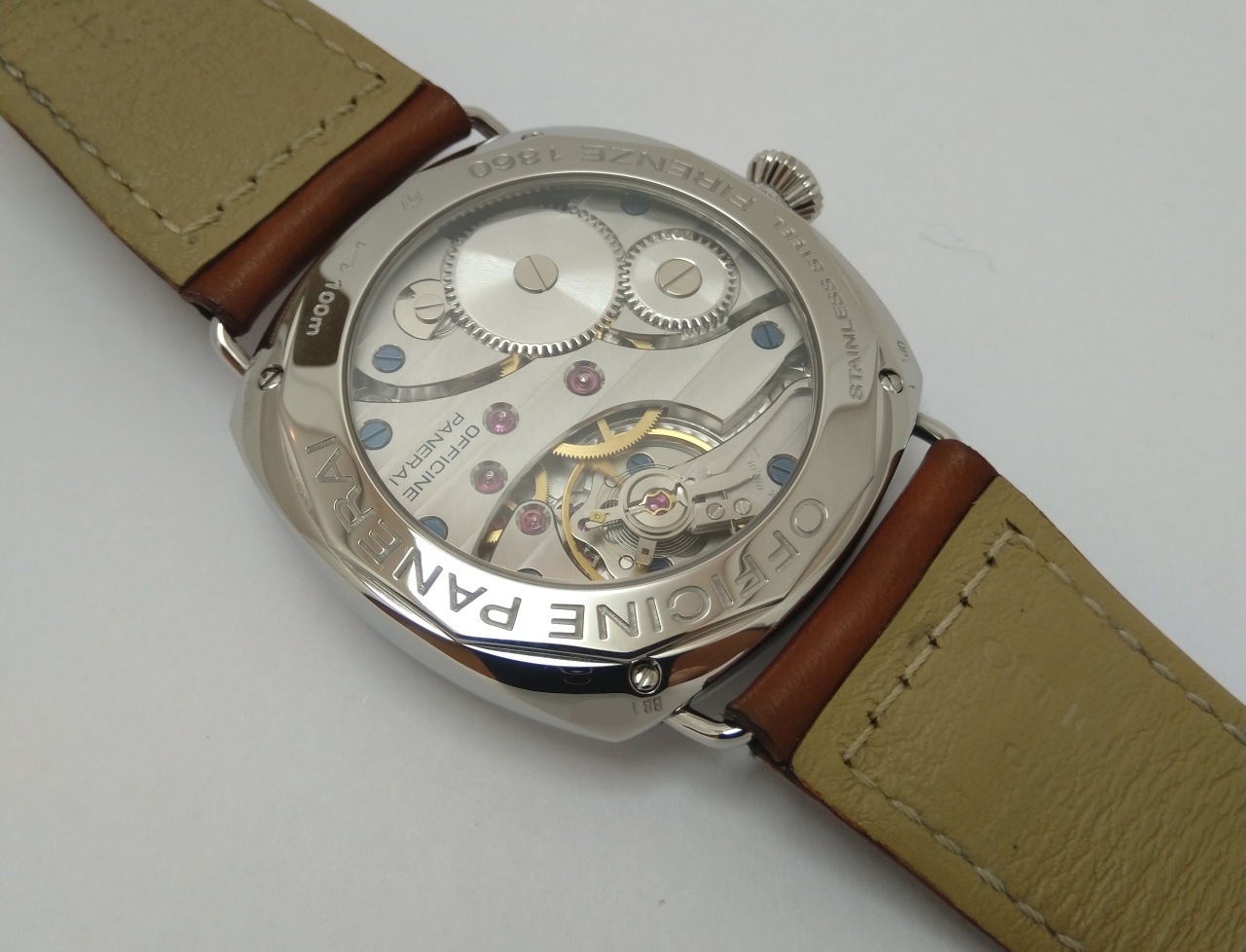 Механизм: Panerai OP XI с ручным заводом, вынесенная секундная стрелка. Запас хода до 56 часов.