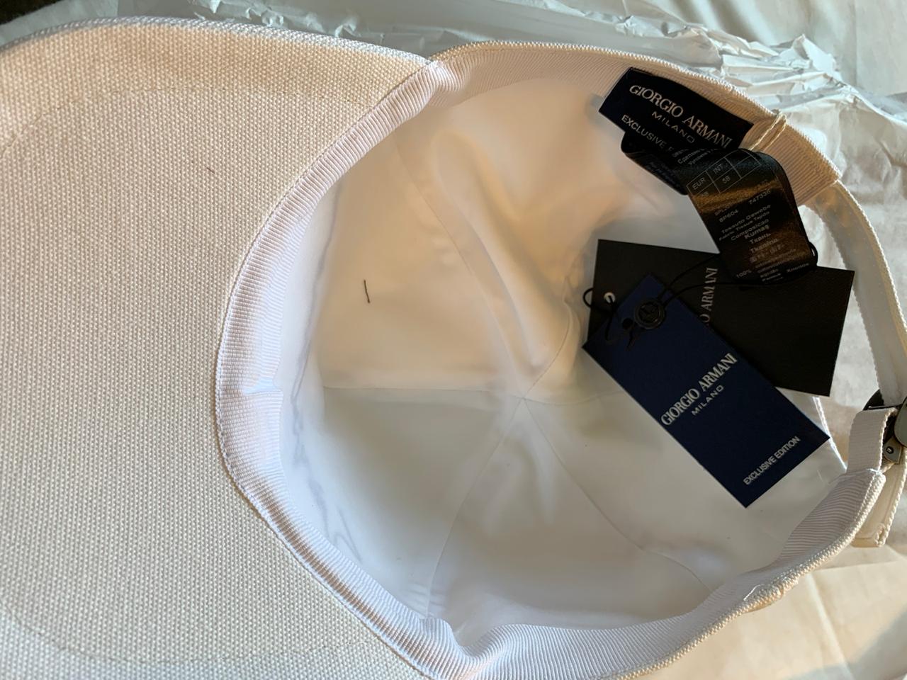 Продается новая бейсболка белого цвета итальянского бренда GIORGIO ARMANI превосходного исполнения, выполнена из прочного хлопка, фактурная ткань хорошо пропускает воздух, поэтому в изделии не будет жарко в знойный день, модель украшена вышивкой в виде автографа GIORGIO ARMANI, регулируемая застежка состав: 100% хлопок, все бирки прилагаются , гарантированный 100% оригинал, размер 58 см , производство Италия