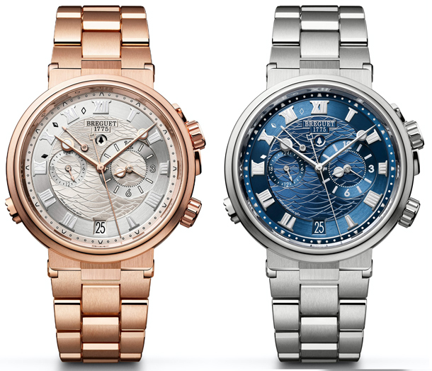 Хорошей новостью от Breguet о модели Marine Alarme Musicale стало то, что модели из розового и белого золота теперь можно носить и на браслетах. Ранее была доступна на браслете только титановая версия. Другие две поставлялись с кожаными ремешками и соответствующей золотой застежкой.