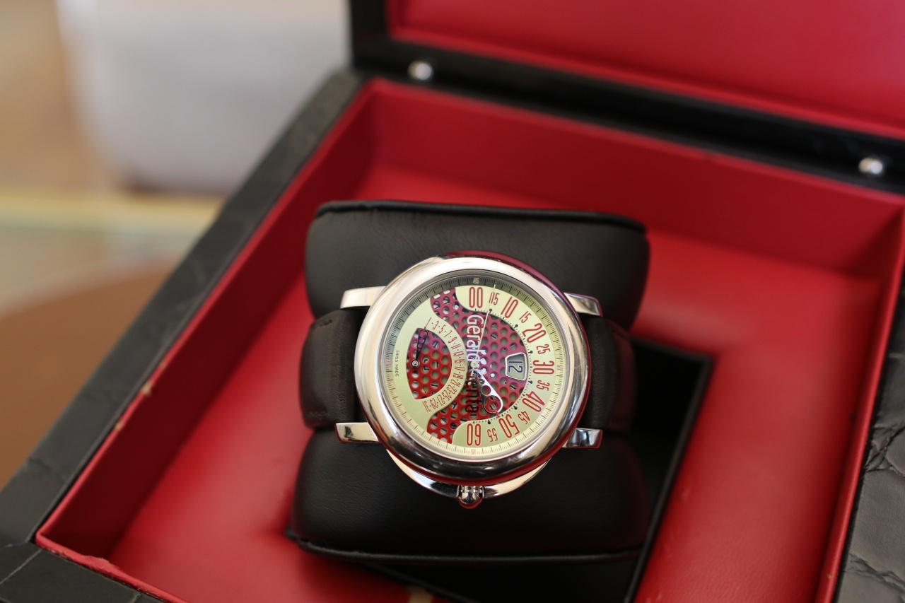 Gerald Genta Arena Bi-Retro ( Ремень , Золотисто-Красный циферблат, 45мм