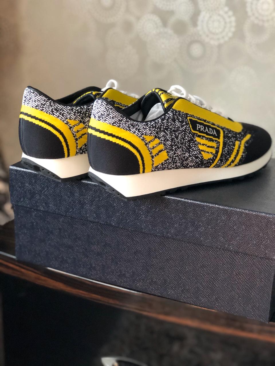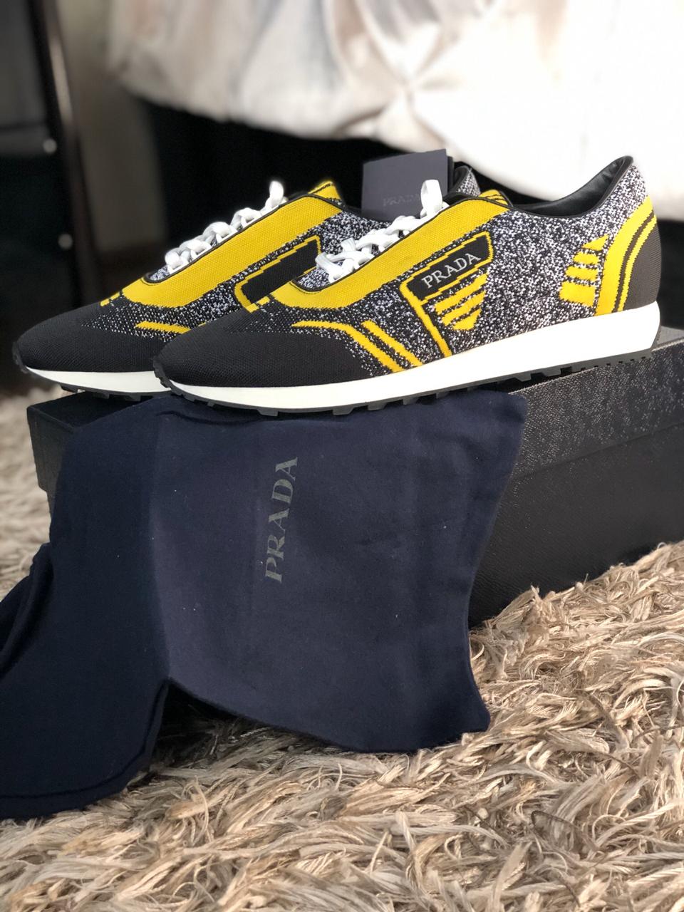 В продаже,новые мужские кроссовки от известного итальянского дома моды PRADA.При создании мужских коллекций дизайнеры PRADA фокусируются на моделях,которые никогда не выходят из моды,но при этом всегда остаются актуальными и вписываются в любой гардероб.Данная обувь-не исключение.Это сочетание технологичных материалов,мастерского пошива и богатой цветовой палитры.Яркий пример-в равной степени элегантные и комфортные кроссовки на шнуровке чёрного,серого и жёлтого цвета.Они имеют закруглённый носок,шнуровку спереди,логотип снаружи,стиль колор-блок,стельку с логотипом и плоскую резиновую подошву.