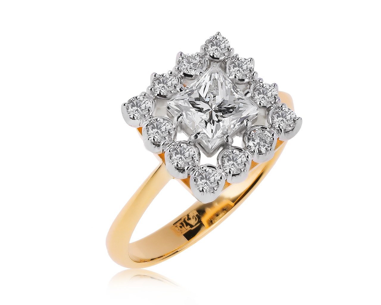Модное золотое кольцо с бриллиантами 1.52ct