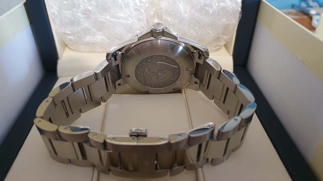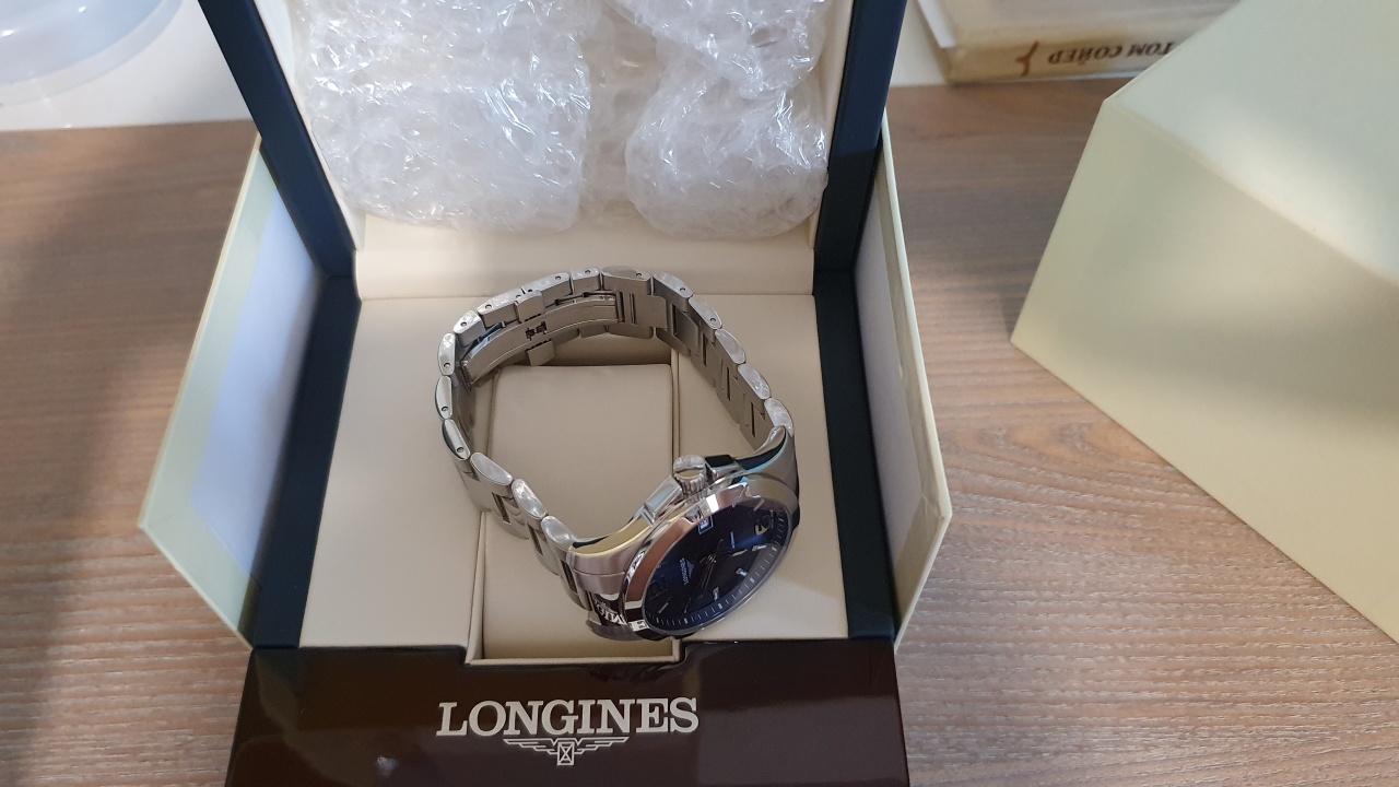 Продаю идеальные Longines conquest, кварцевые, синий цифер, 41мм!!! Куплены в марте в harold новыми, соответственно на гарантии ещё 2,5 года. Носили очень мало. Состояние поставил отличное, так как на безеле есть минимальные следы обычной носки. Никаких серьёзных царапин, сколов и т.д. нет. По фото всё видно. Часы в идеале! Один важный плюс моих часов - идеальное попадание секундной стрелки во ВСЕ метки, прямо по всему кругу. К сожалению, это огромная редкость, нашёл такой экземпляр среди множества других. Полный комплект, часы, коробка, документы, гарантия, все звенья браслета на месте.