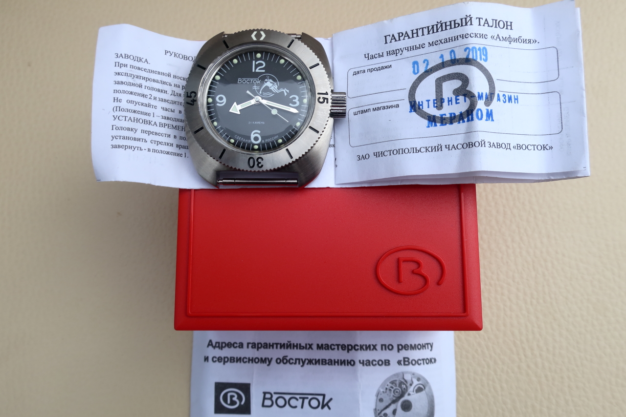 Продам Амфибию Восток модификацию на основе практически не встречающегося в продаже(кроме спецсерий Меранома) 710-го брашированного корпуса,сборка заводская(спецзаказ через Мераном),часы вообще не носились,только фотографировались для форума,соответственно состояние новых часов,без каких либо технических проблем и недостатков,полный заводской комплект(ремешок в комплект продажи не входит),на гарантии.Цена: