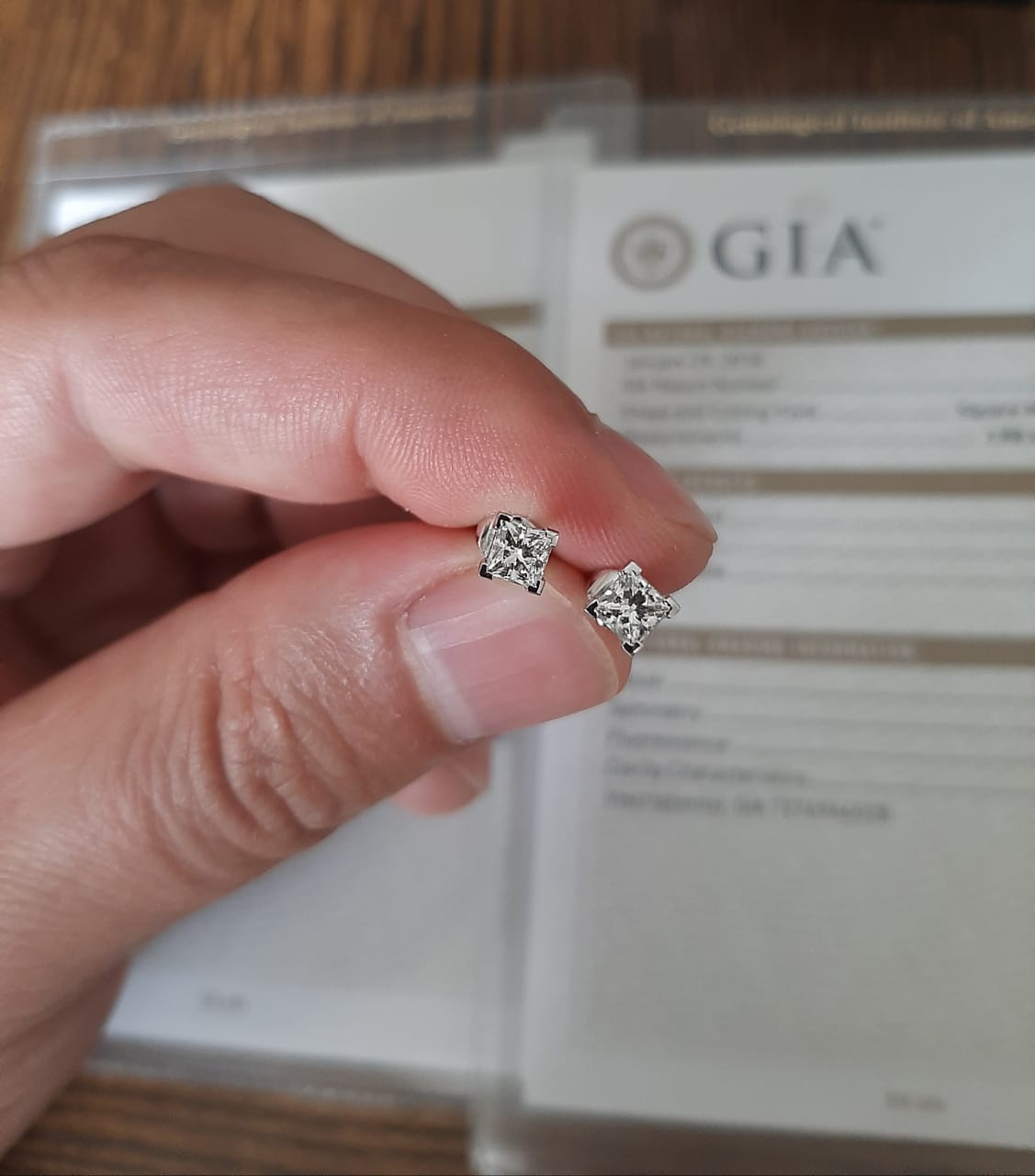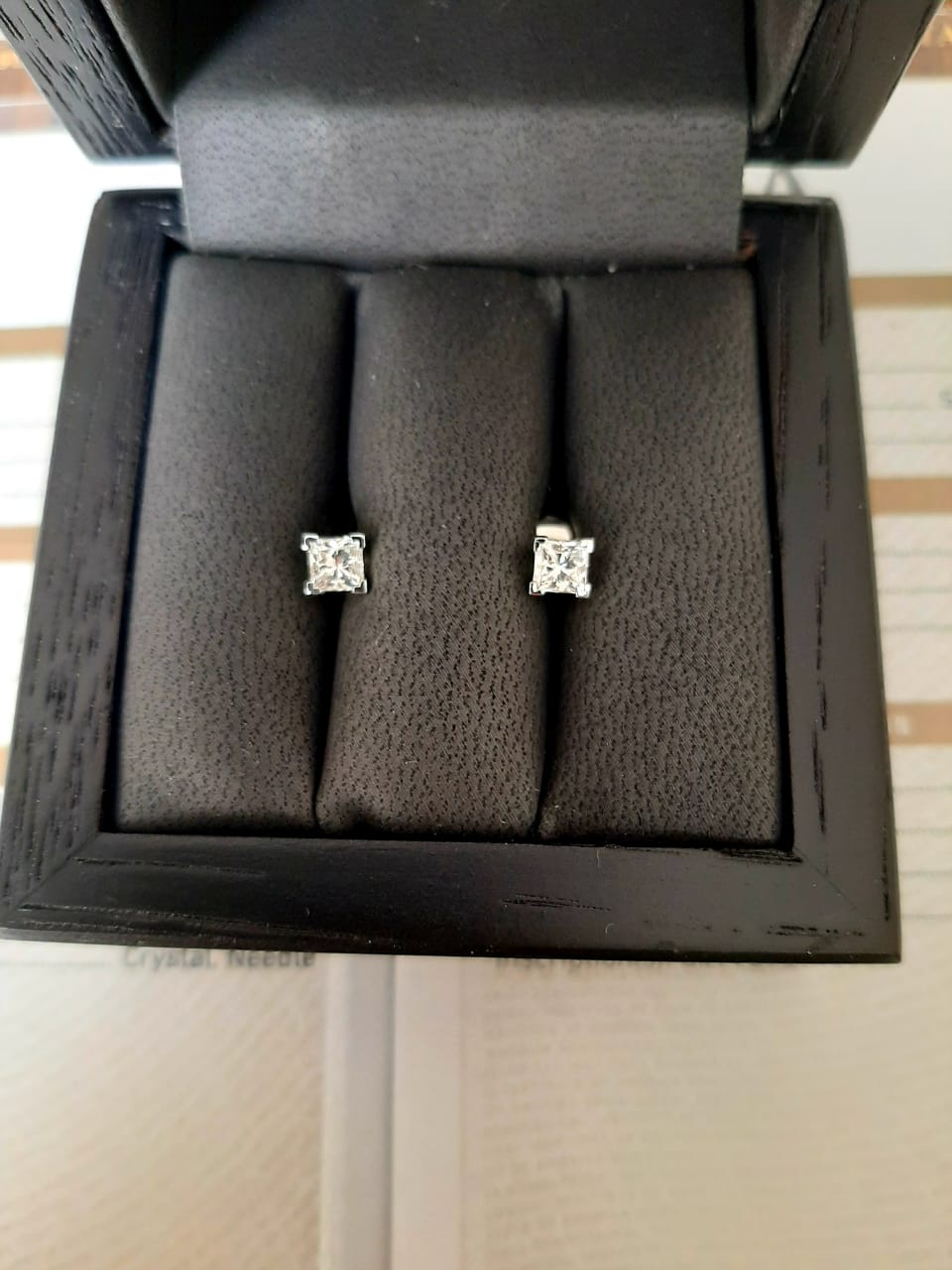 Серьги-пуссеты с бриллиантами огранки "Принцесса" по 0,35 карат (сертификаты GIA)!