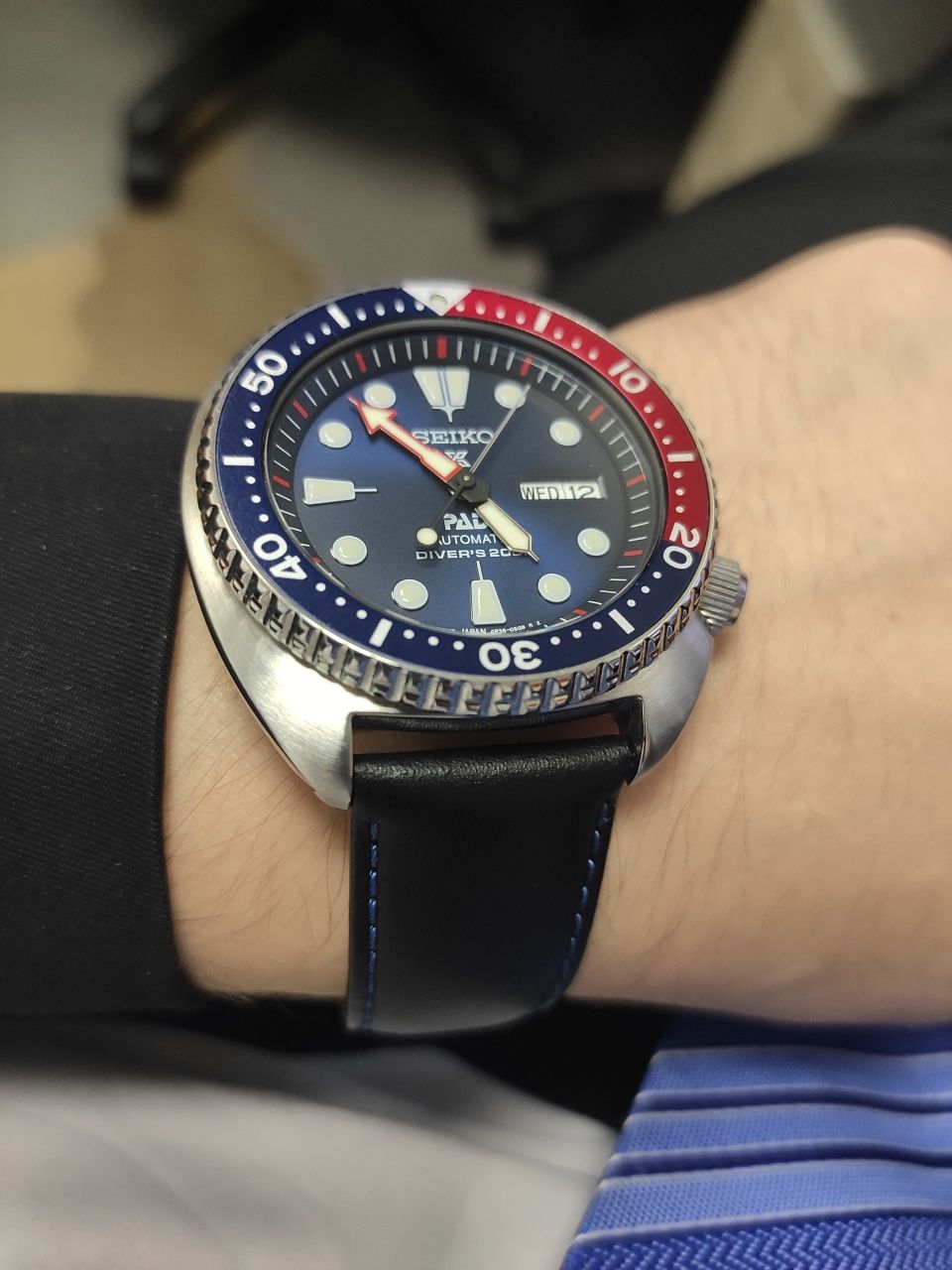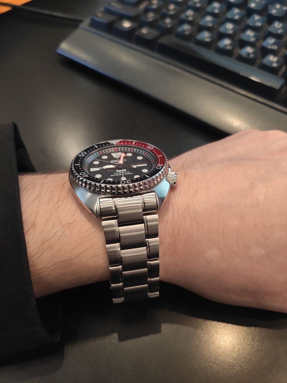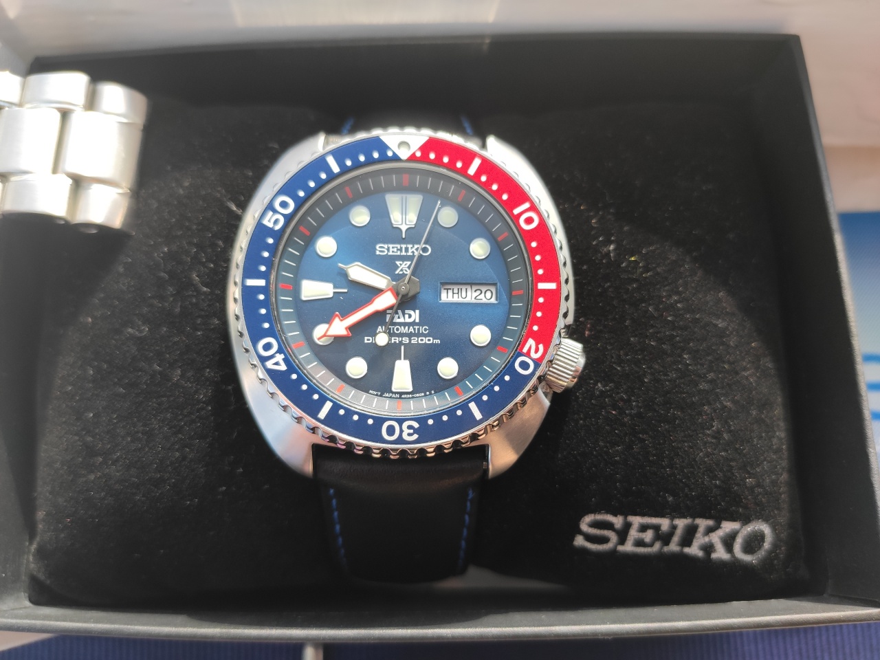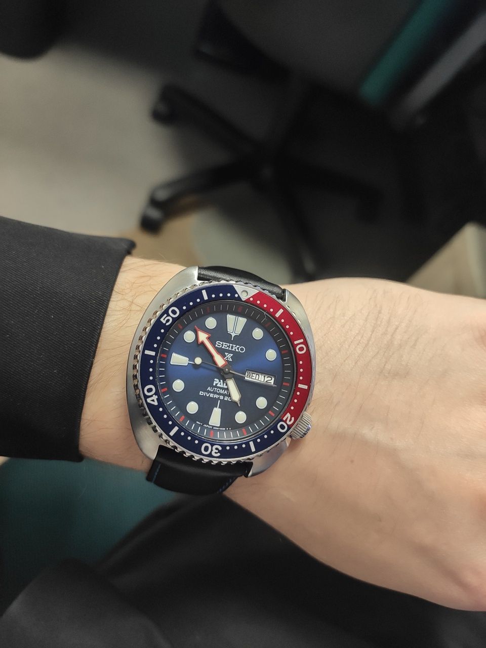 Присутствуют слегка заметные следы носки. Крупных царапин на корпусе нет. На стекле вообще нет. Комплект: часы, документы, коробка, 2 НАТО ремня, оригинальный браслет, ремешок из канваса (seiko, от другой модели), кожаный ремешок stailer (на фото). Дата производства часов: Май 2019.