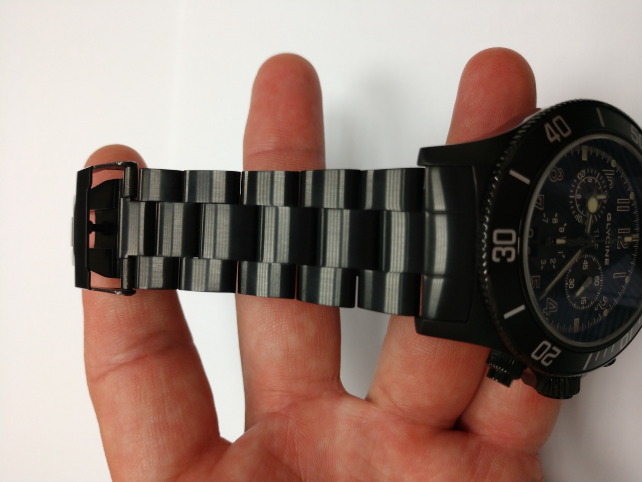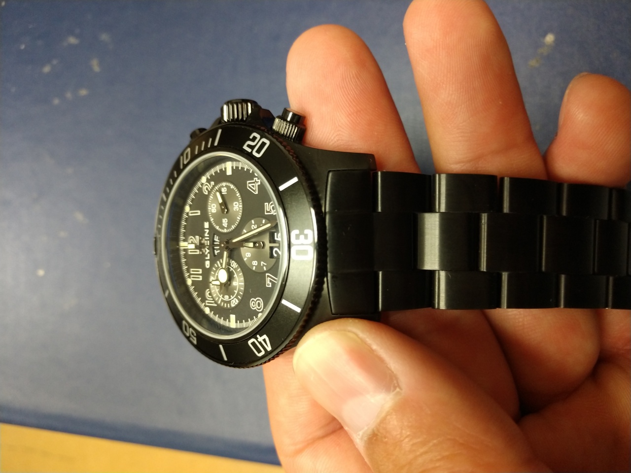Часы в отличном состоянии, носились ну вот не прям так что бы, плюс PVD покрытие твёрже простой полировки. Видимо). Сложно вообще что либо разглядеть, разве что на безеле очень малозаметная царапинка. Ход +3...+4 сек/мес. В комплекте коробка, бирка, снятые аккуратно звенья, бумажка от производителя. Люм ярче обычного, нормально. Внутренний антиблик. Завинчивающиеся пушеры и головка. Хороший калибр Ronda 5050.C, погуглите. Безель на 60 четких уверенных щелчков, не люфтит. На запястье 17-18мм сидят отлично, не тяжёлые, не мешают, ни че но. Ну и PVD к телу как то приятнее стали.