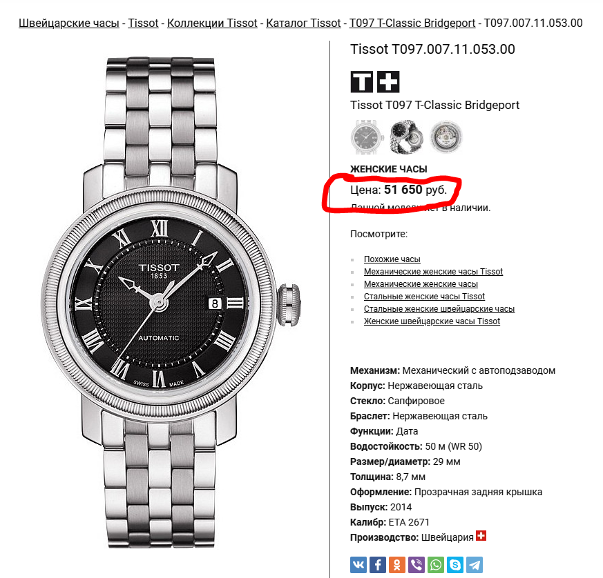 TISSOT Bridgeport Ladies Auto T0970071105300