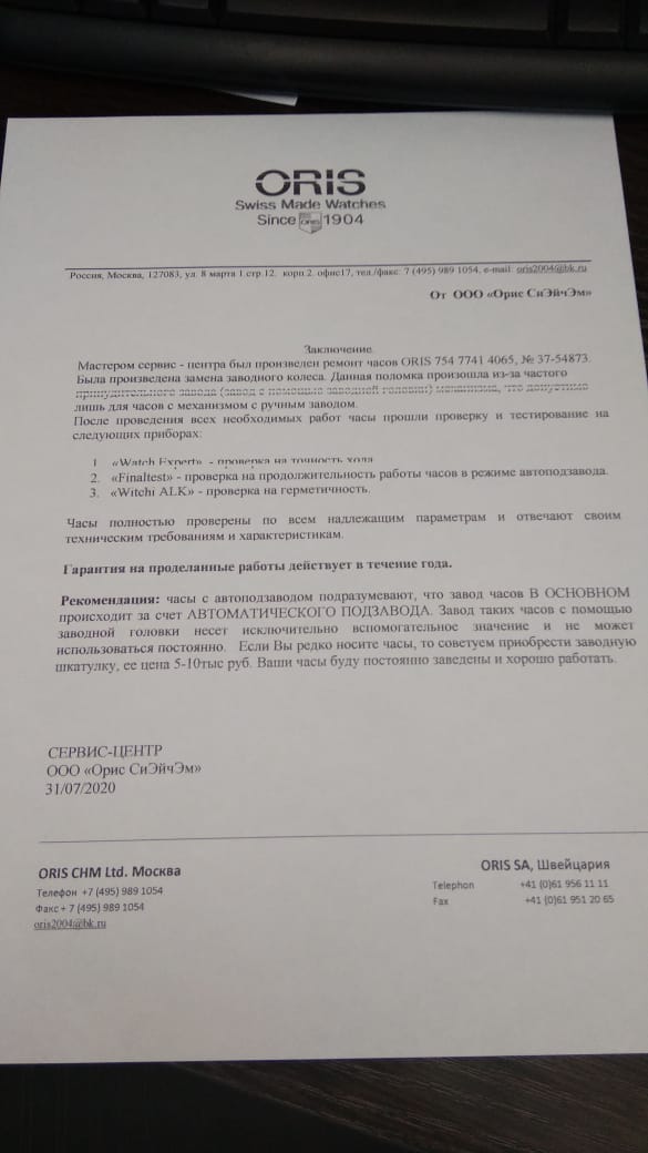 Oris: завод механических часов запрещён!
