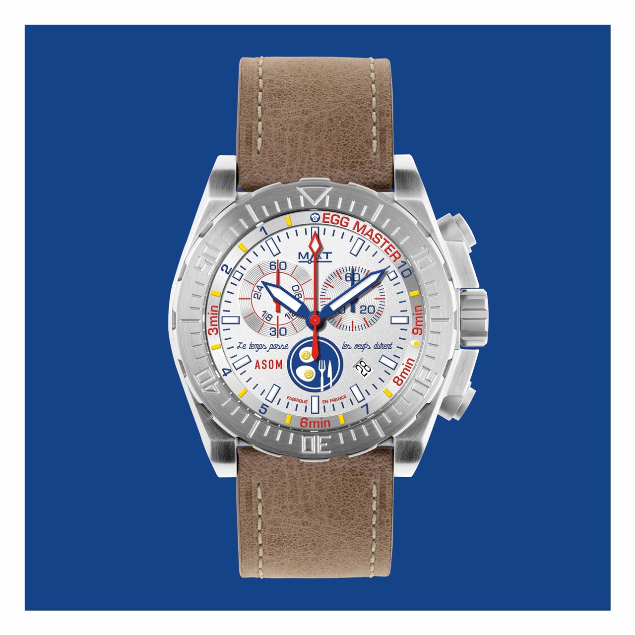 Egg Master. Сделанные во Франции часы оснащены швейцарским кварцевым механизмом с хронографом, в котором функция обратного отсчета адаптирована для приготовления яиц. С помощью заводной головки можно установить центральную стрелку для обратного отсчета времени строго напротив изображения яйца, расположенного между 8 и 9 минутами на специальном циферблатном диске Egg Master. После запуска хронографа стрелка отсчитает ровно восемь минут 40 секунд, идеальное время варки яйца для Oeuf Mayonnaise. В процессе работы хронографа часы издают звуковой сигнал каждую минуту по мере приближения времени окончания варки, в последние секунды сигнал звучит чаще, предупреждая повара о приближении момента извлечения яйца из кастрюли с кипящей водой. На циферблате также расположен герб организации ASOM - тарелка с яйцами - вместе с девизом организации: «Le temps passe, les oeufs durent» - «Время уходит, яйца остаются навсегда». Организация ASOM проводит ежегодный конкурс по приготовлению Oeuf Mayonnaise, в этом году MAT Egg Master являются официальным хронометристом соревнований. Казалось бы, концепция хронографа для приготовления яиц довольно дурацкая, но так ли сильно эти часы отличаются от Yacht-Master, которые предназначены для обратного отсчета времени до начала регаты? По крайней мере, хронографом Egg Master можно пользоваться гораздо чаще на кухне, а не один раз в год на линии старта гоночных яхт.