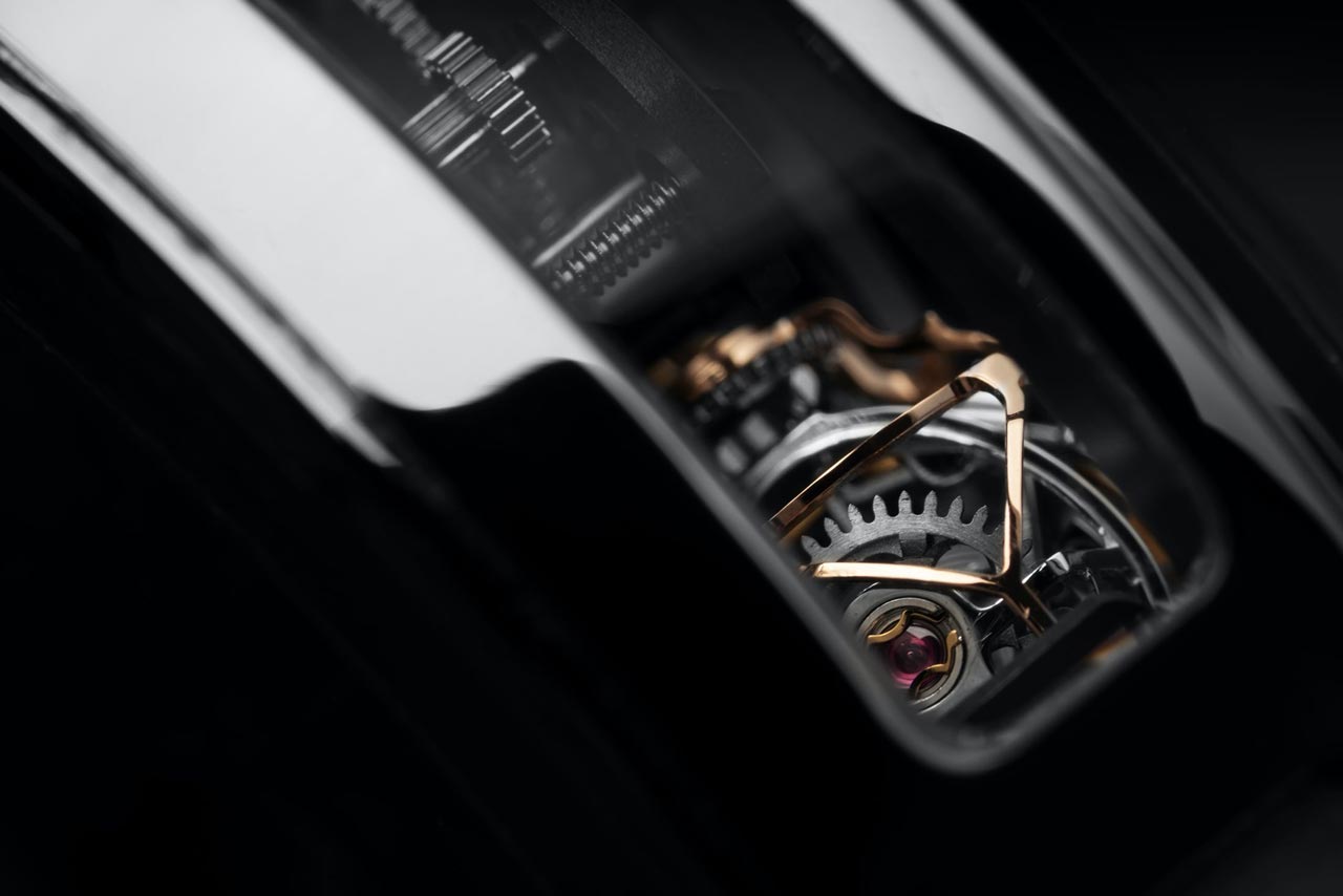 Собранная воедино, вся умопомрачительная конструкция механизма caliber CP03, упакована в корпус весьма разумных размеров - диаметром 48 мм и высотой 19 мм. Корпус спроектирован таким образом, чтобы максимально раскрыть магию движения двух трехосных турбийонов, в нижней части находится обзорное окно, фактически являющееся частью цельного сапфирового стекла, защищающего механизм сверху. В боковой части корпуса также есть несколько окон, и в целом визуальный эффект завораживает - даже на неподвижных изображениях сочетание механической сложности и резкого контраста в отделке различных компонентов поразительно. Сaliber CP03, включающий в свою конструкцию два трехосных турбийона, 67 рубиновых камней, 6 работающих параллельно заводных пружин, весит 15,7 грамм, его баланс работает на частоте 3 Гц (21 600 пкч), запас хода составляет 32 часа. Планируется выпустить 3 вариации моделей в корпусах из «кованного» углерода, отличающиеся цветовым оформлением, и одну версию в корпусе из титана с черным DLC-покрытием, получившую название All Black. Выпуск каждой вариации будет ограничен 20 экземплярами, стоимость составит 470 000 долларов США за модели в углеродных корпусах и 460 000 долларов США за модель в черном титане.
