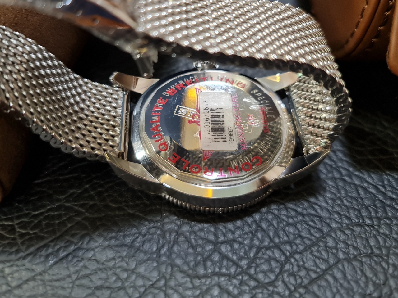 Доступные в двух размерных классах – с диаметром 42 и 46 мм – эти часы с водонепроницаемостью до глубины 200 метров (660 футов) перекликаются своей функциональностью и элегантностью дизайна с легендарной моделью 1950-х годов. Черный, голубой или зеленый вращающийся в одном направлении безель сочетается с циферблатами различных расцветок, его можно также дополнить версией 42 мм и безелем из красного золота 18 карат. Оригинальный стиль этой благородной классики подчеркивается стальным браслетом миланского плетения либо перфорированным каучуковым ремешком, обладающим застежкой, которая для большего удобства снабжена регулятором длины, позволяющим изменять длину ремешка за считанные секунды. Стальной корпус. Синий стальной безель. Механизм с автоподзаводом Breitling 17, собран на 25 драгоценных камнях, балансовая частота 28800 пол/час, с запасом хода в 40 часов. Центральная часовая, минутная и секундная стрелки, окошко даты в положении на 6 часов. Вращающийся в одном направлении, с запором. Выпуклое сапфировое стекло, с антибликовым покрытием с обoих сторон. Серебристо-белый циферблат, стрелки покрыты люминесцентным составом. Браслет Оушен Классик Сталь.