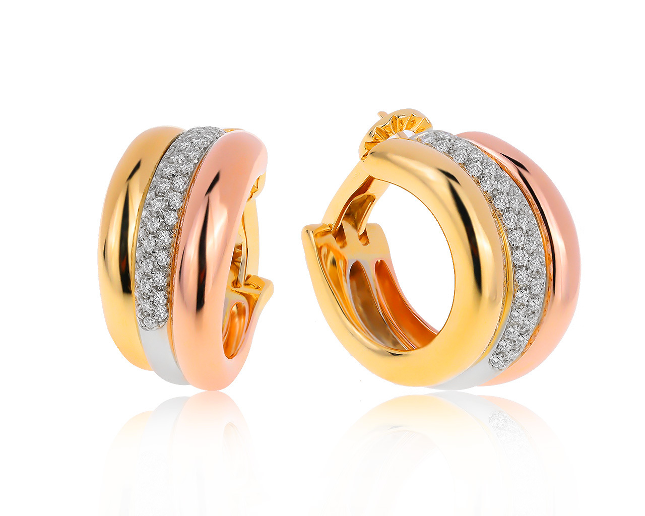 Оригинальные золотые серьги с бриллиантами 0.85ct Cartier Trinity