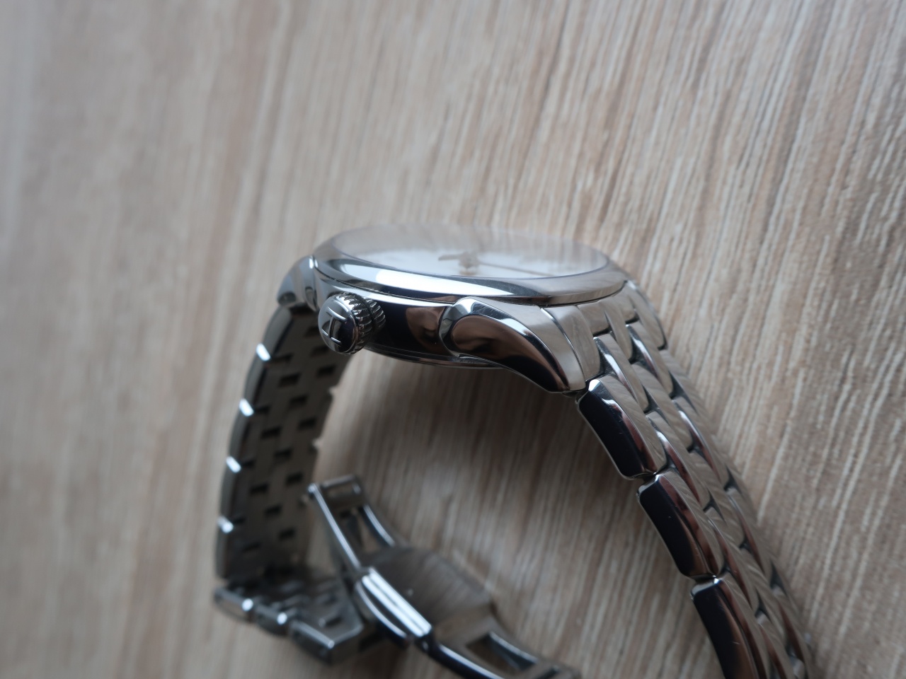Часы надевали несколько раз. Состояние новых. При замене батарейки немного поцарапали заднюю крышку. Браслет уменьшен на запястье 14,5-15 см. Снятые звенья в комплекте.