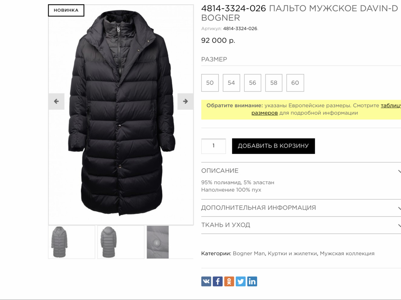 Покупая пуховики Богнер - это надежная гарантия, что приобретенная вещь истинно соответствует всем международным стандартам. Это гарантия, что деньги не потрачены зря, и покупатель стал обладателем изделия, которое послужит много лет, сохраняя свой первоначальный вид и другие эксплуатационные качества. В дополнение - всегда презентабельный и стильный вид.