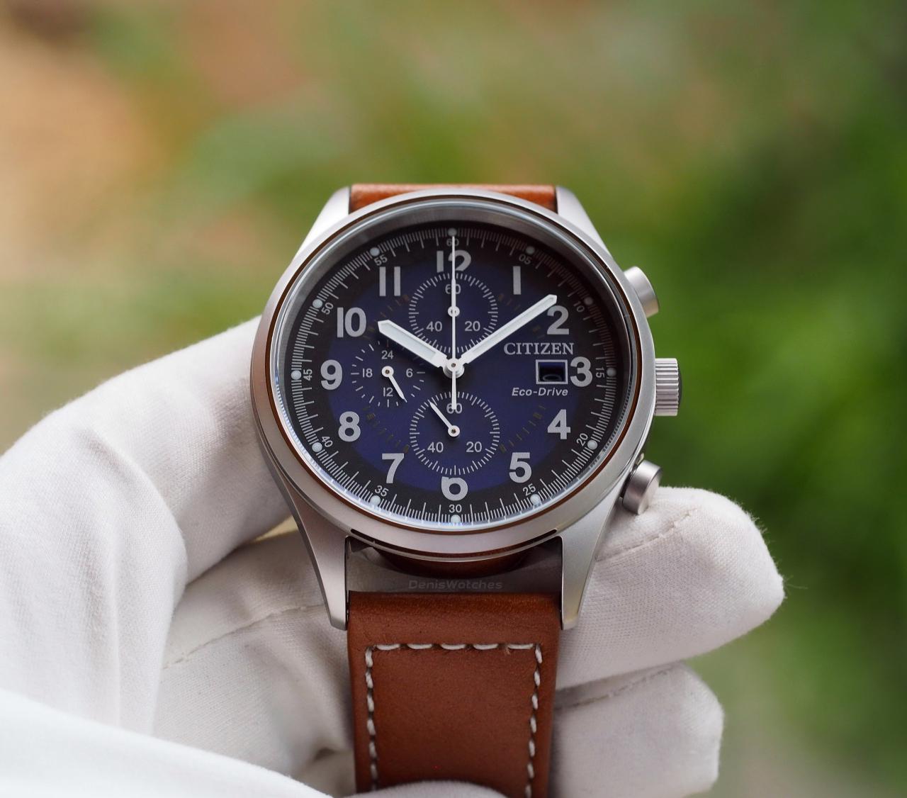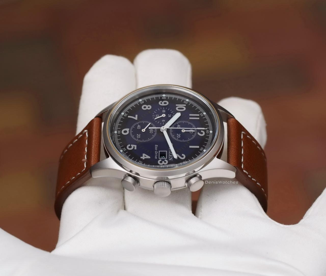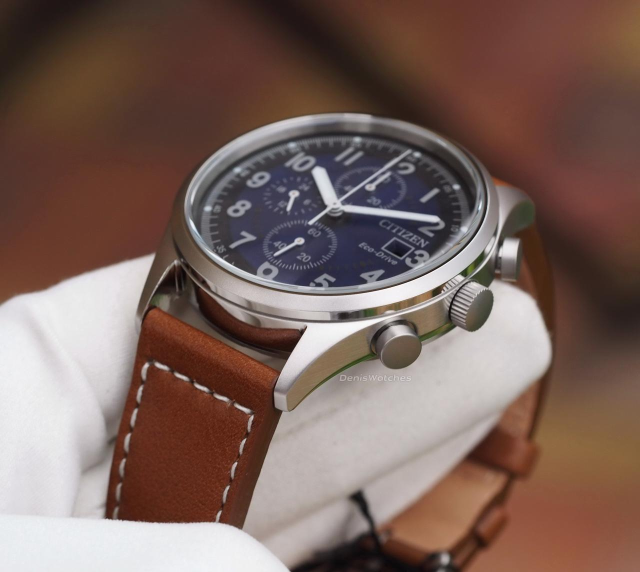 Стильный хронограф с синим циферблатом на красивом коричневом ремне с контрастной строчкой!