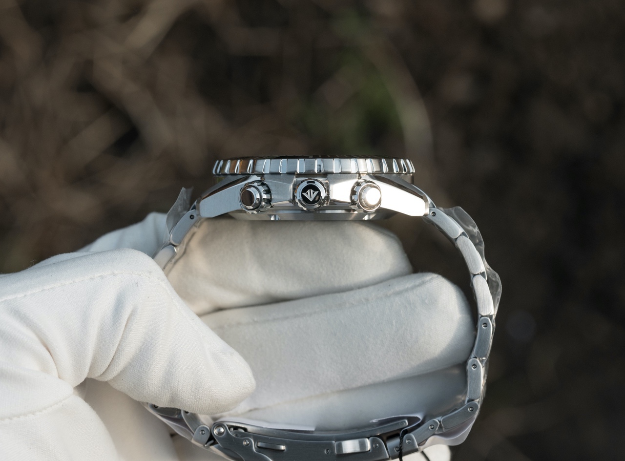 Заводная головка завинчивается, кнопки хронографа тоже завинчиваются