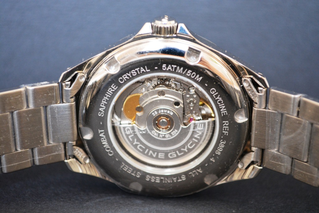 Прозрачная задняя крышка, сквозь которую виден механизм и декорированный ротор