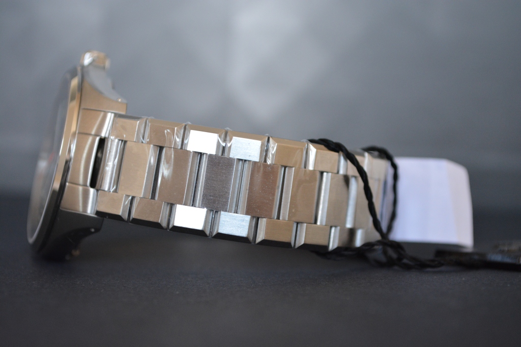 Корпус и браслет из нержавеющей стали с поверхностями, сочетающими сатинированную и полированную отделку