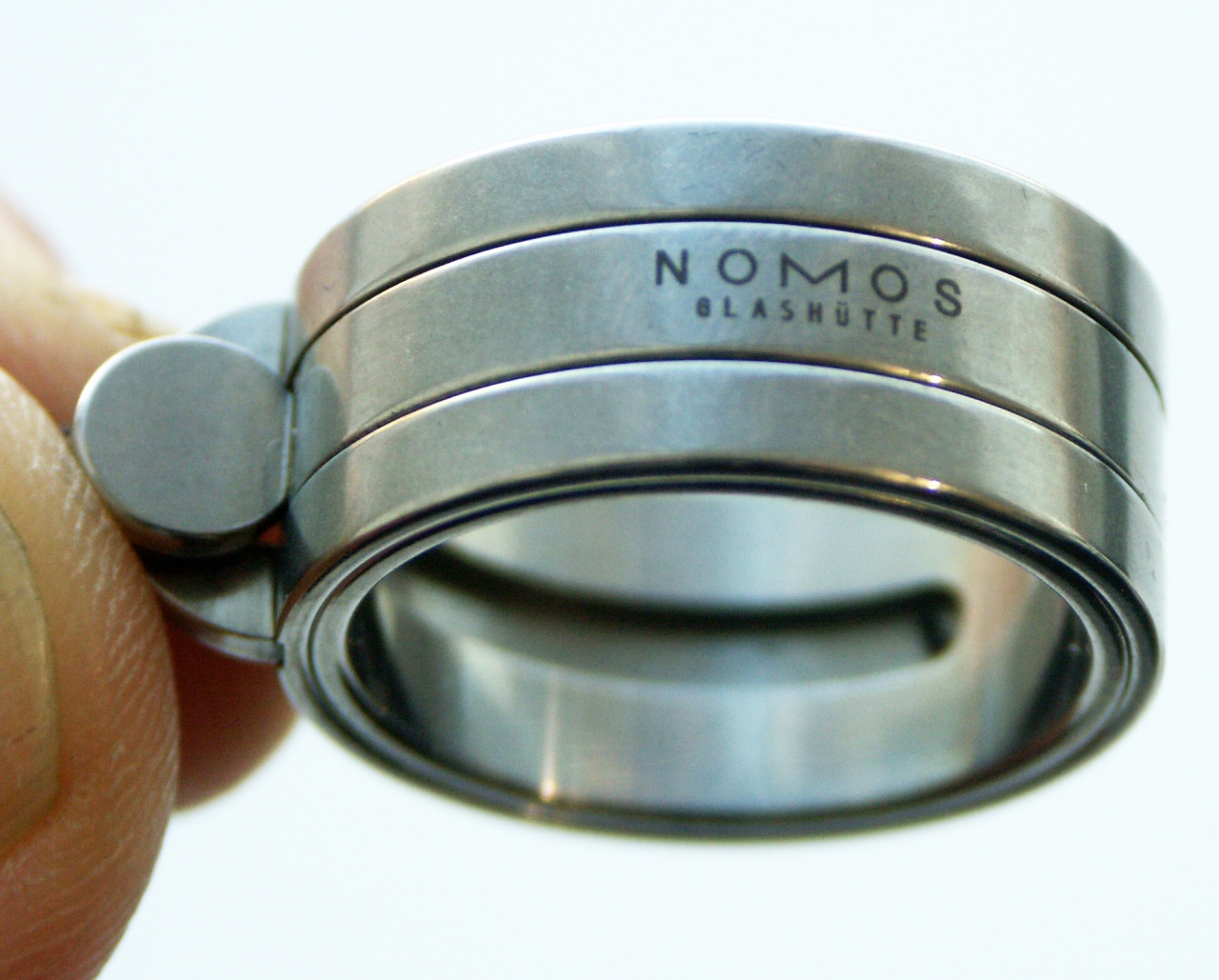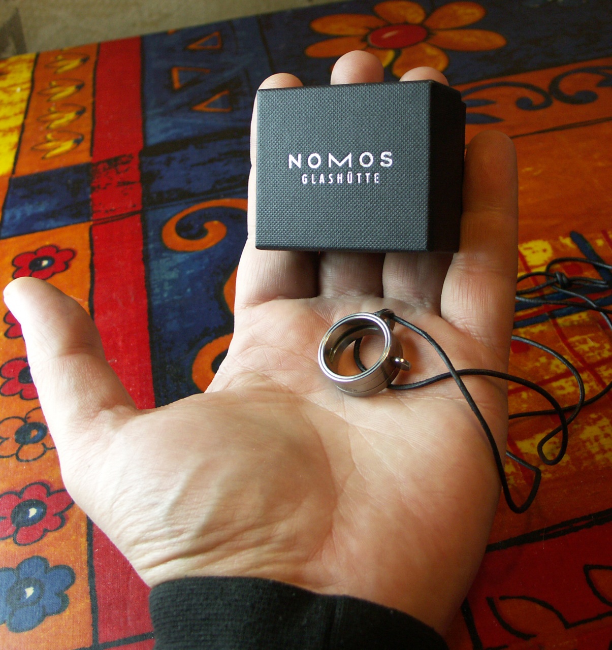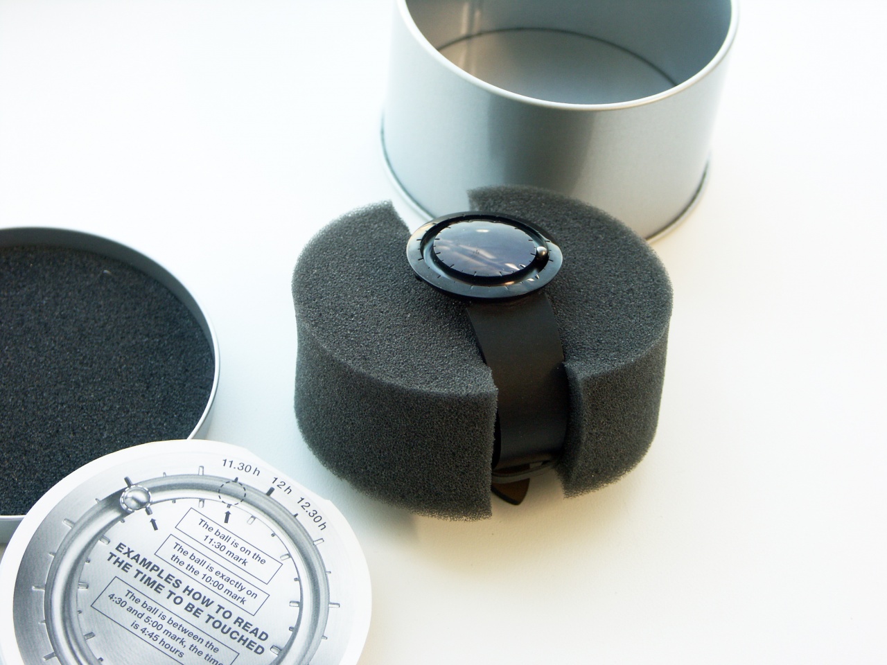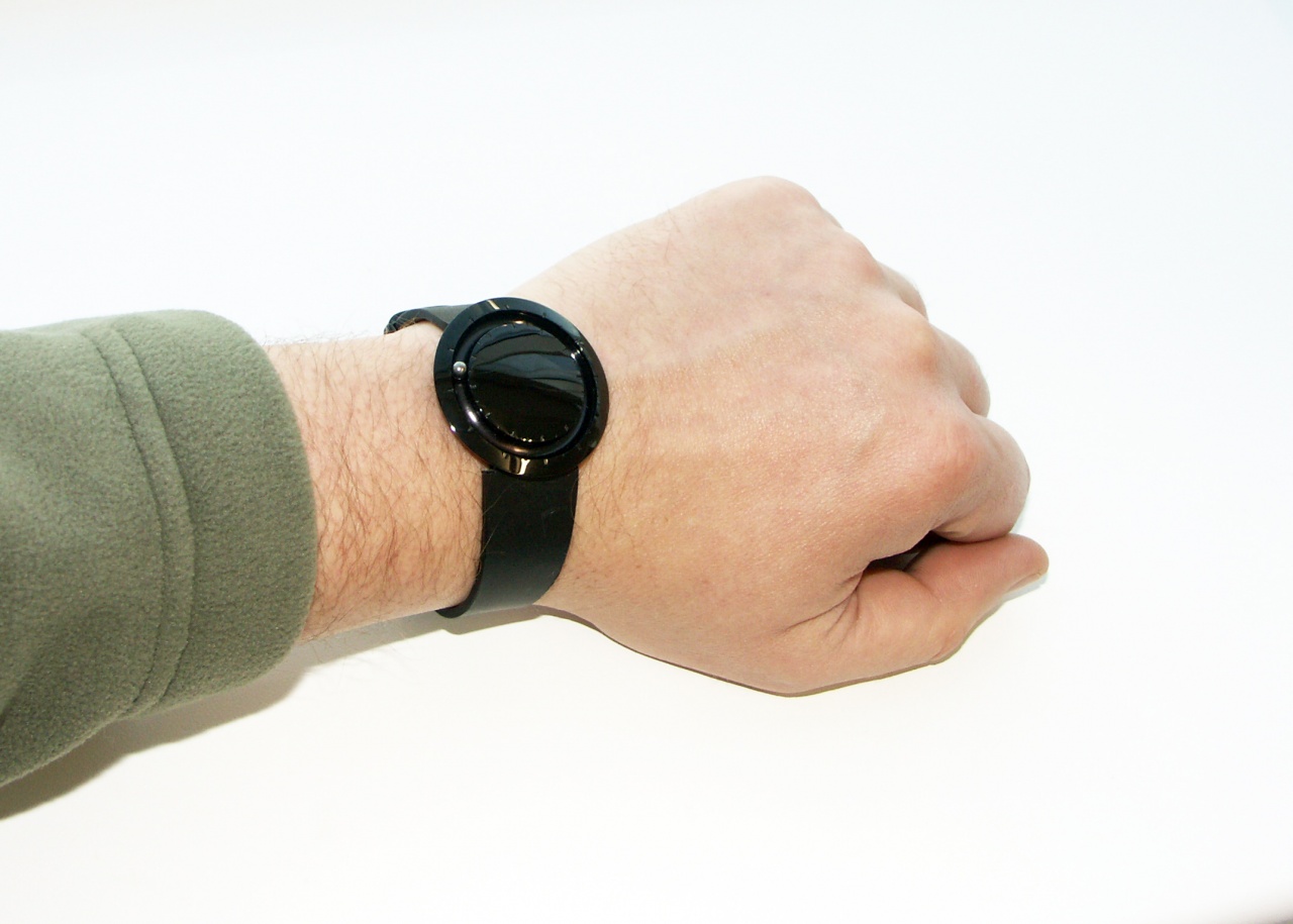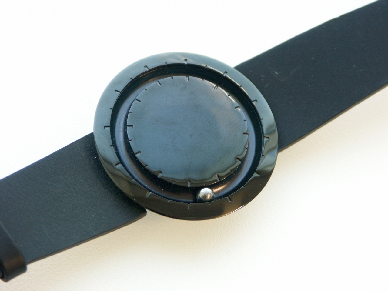 Даже то, что часы с нарочным приехали в Москву много позже, не испортило настроения. Что сказать о приборе? Единственные часы в коллекции диаметром 40 мм. Напоминают черную летающую тарелку с канавкой, в которой свободно бегает шарик. В одном месте шарик магнитится и прилипает – это и есть точное время. Определяется как в обычном однострелочнике. Солнечный Номос прост, Лако Абакус – еще проще. По крайней мере, по внешнему виду. Даже не верится, что и то и другое сделали немцы. Как сказал мой знакомый друг-оружейник: «немецкий механизм можно узнать издалека – ни один немец не поставит пружинку там, где их можно поставить четыре». Так вот, Лако Абакус и Солнечный Номос – прямая противоположность всему этому. Ниже – фотографии шарика с тарелочкой. А вот – видео, как оно работает: