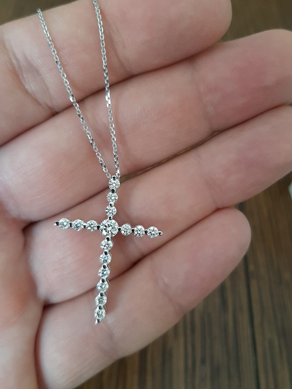 Подвеска - Крест с бриллиантами, 1,11 карата (аттестат МГЛ)!