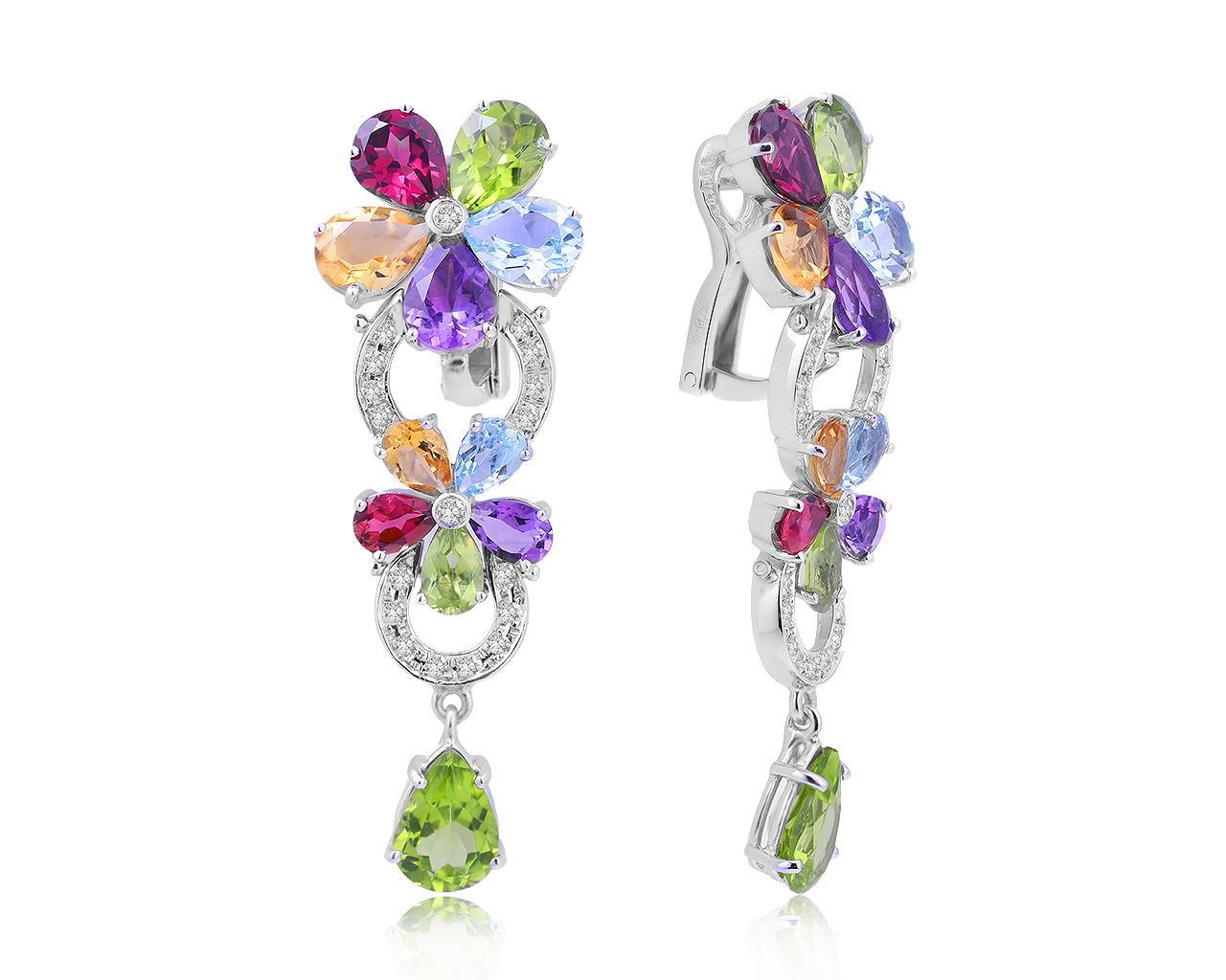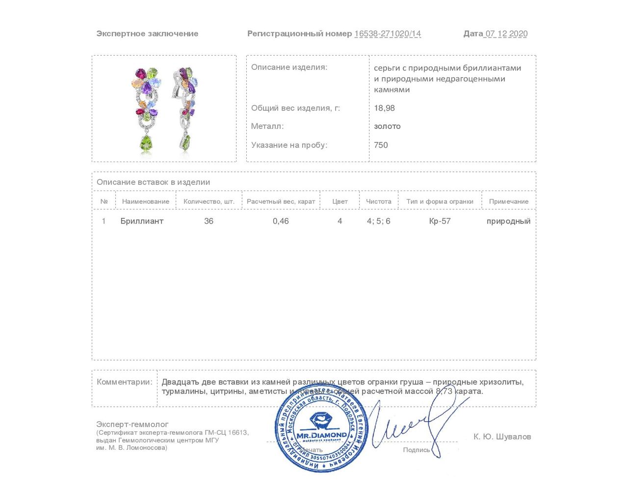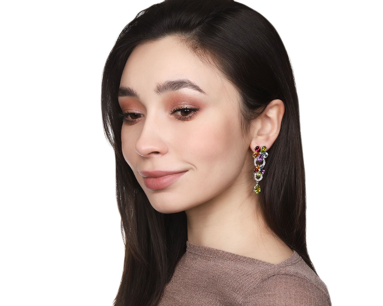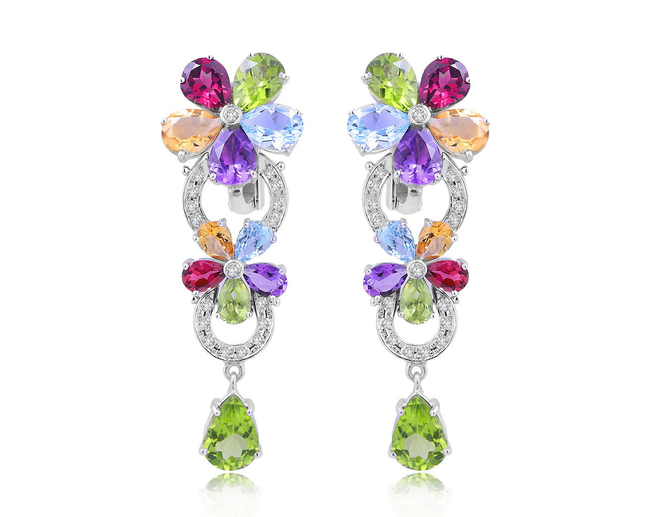 Итальянские золотые серьги с цветными камнями 8.73ct