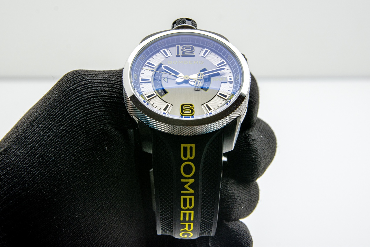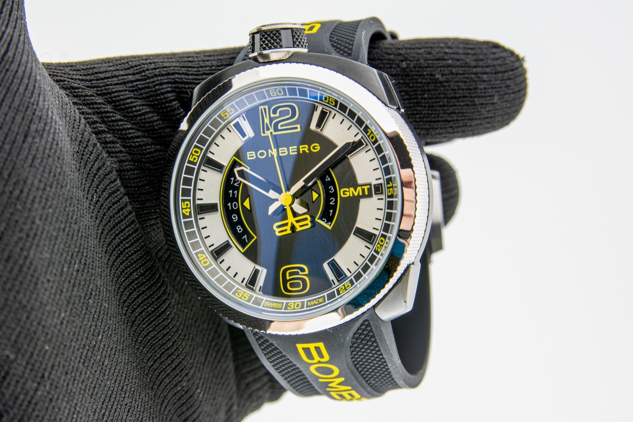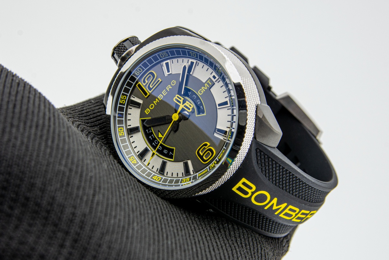 В продаже яркий харизматичный 3-стрелочник от довольно молодого швейцарского производителя часов класса люкс Bomberg, модель Bolt 1968 GMT