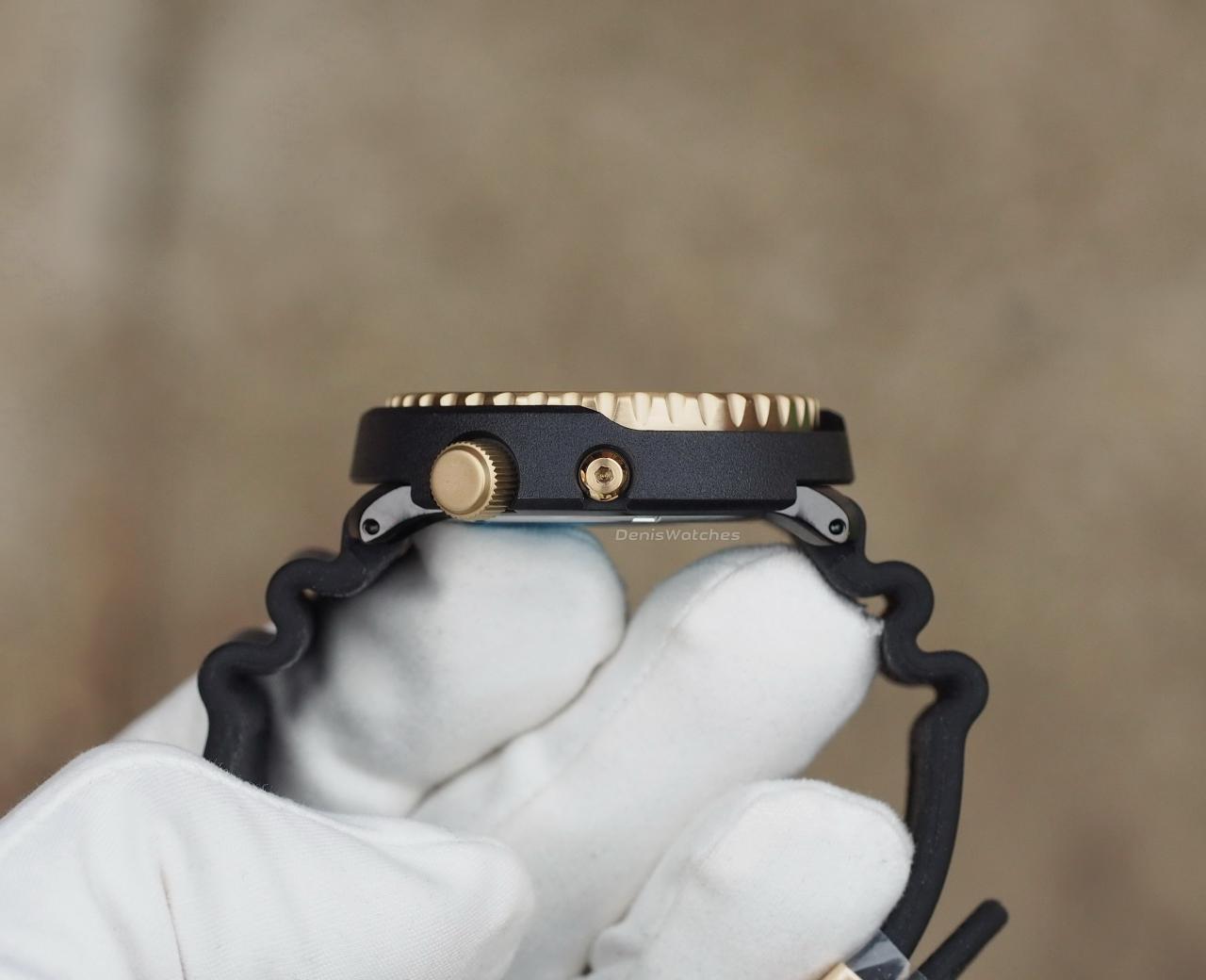 Люминесцентные стрелки и метки - фирменная светомасса LumiBrite, светит очень ярко, цвет зеленый, так же светится разметка безеля от 0 до 20