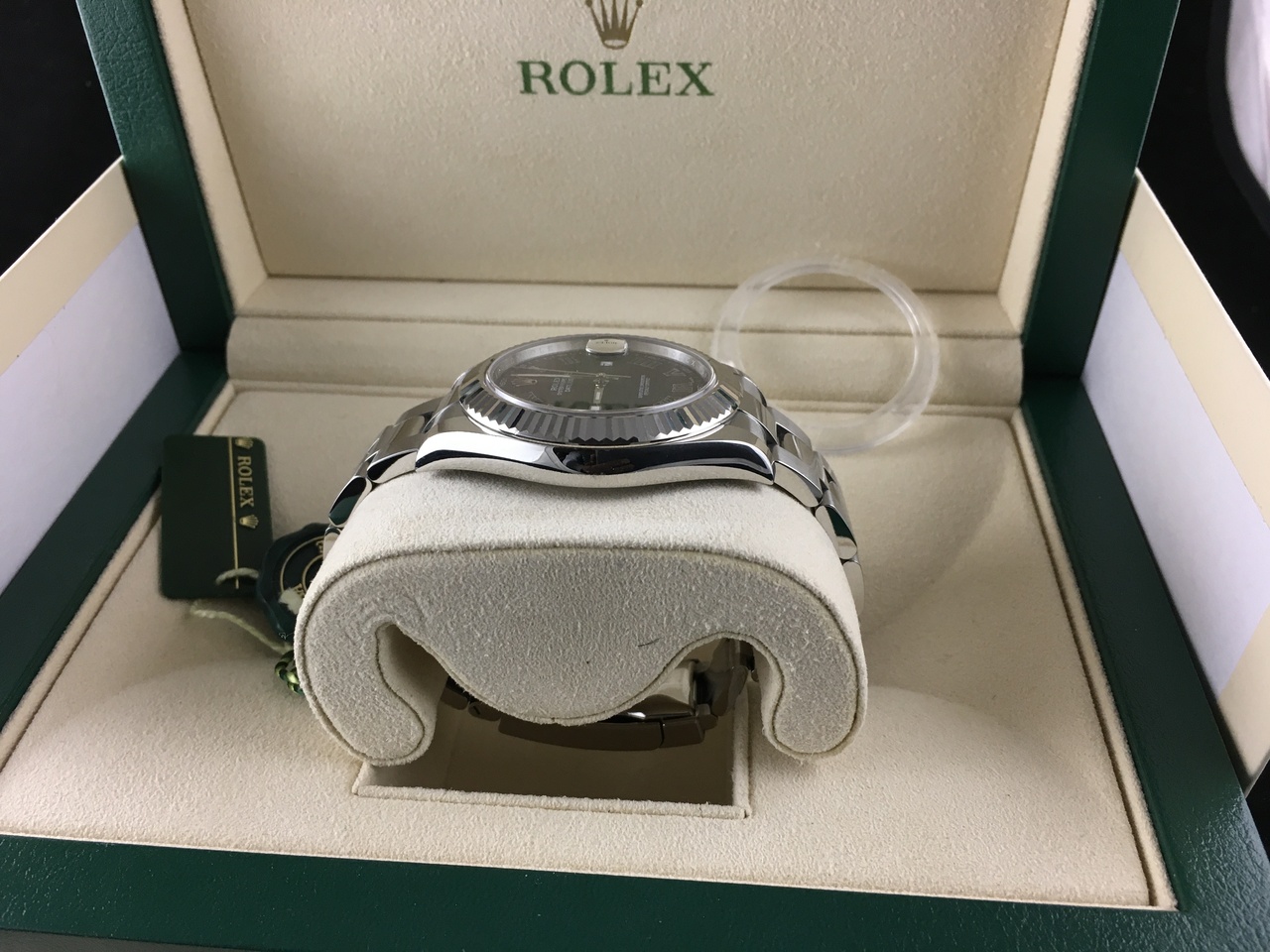 Часы с интересным и достаточно редко встречающимся циферблатом серо/графитового цвета, который в зависимости от освещённости, меняет цвет от светло серого, до чёрного. Оригинальности часам придаёт интересная комбинация римских цифр и метки с люминесцентным составом, которая не даст потеряться во времени ни днём ни ночью Все остальные приятные бонусы Дэйджаста, как говорится, налицо. Удачный, эргономичный корпус и сдержанно/интригующий циферблат, золотой рифлёный безель, приятно играющий на солнце и накладная корона(куда же без неё), браслет Ойстер, подчёркивающий брутальность данной модели и удобная застёжка ну и конечно же надёжнейший механизм, по которому будут грустить любители мануфактуры ещё очень долго .. Всё перечисленное в совокупности даёт право считать эти часы одними из лучших в линейке и является одним из самых желанных приобретений ! Это отличный компаньон, который не подведёт в любой ситуации!